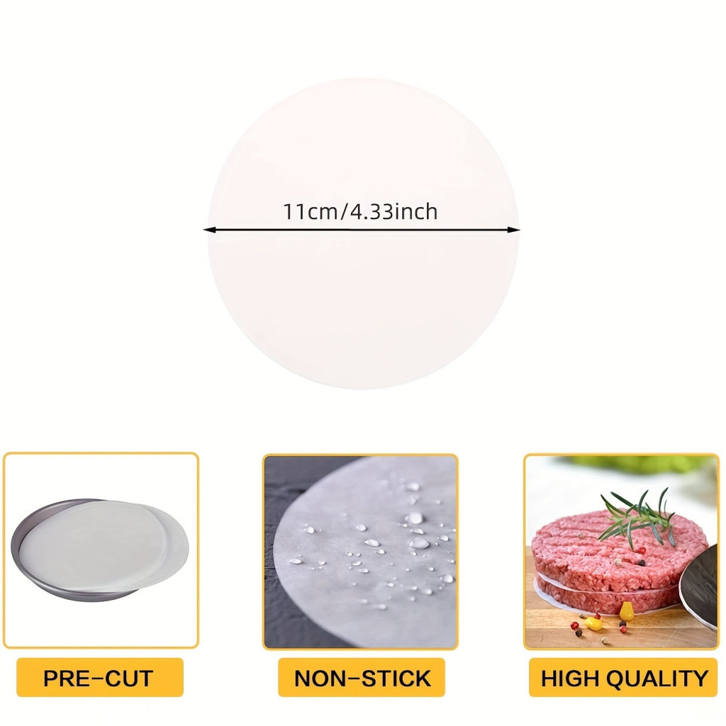 (Kruhový design) Tyto pečicí papíry dokonale pasují k hamburgerovým plackám, což zajišťuje rovnoměrné pečení a snadnou manipulaci.