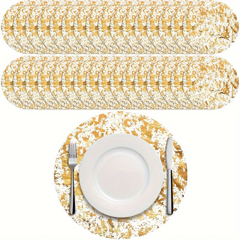 Povyšte své stolování na vyšší úroveň s touto 12dílnou sadou jednorázových zlatých podložek pod talíře.