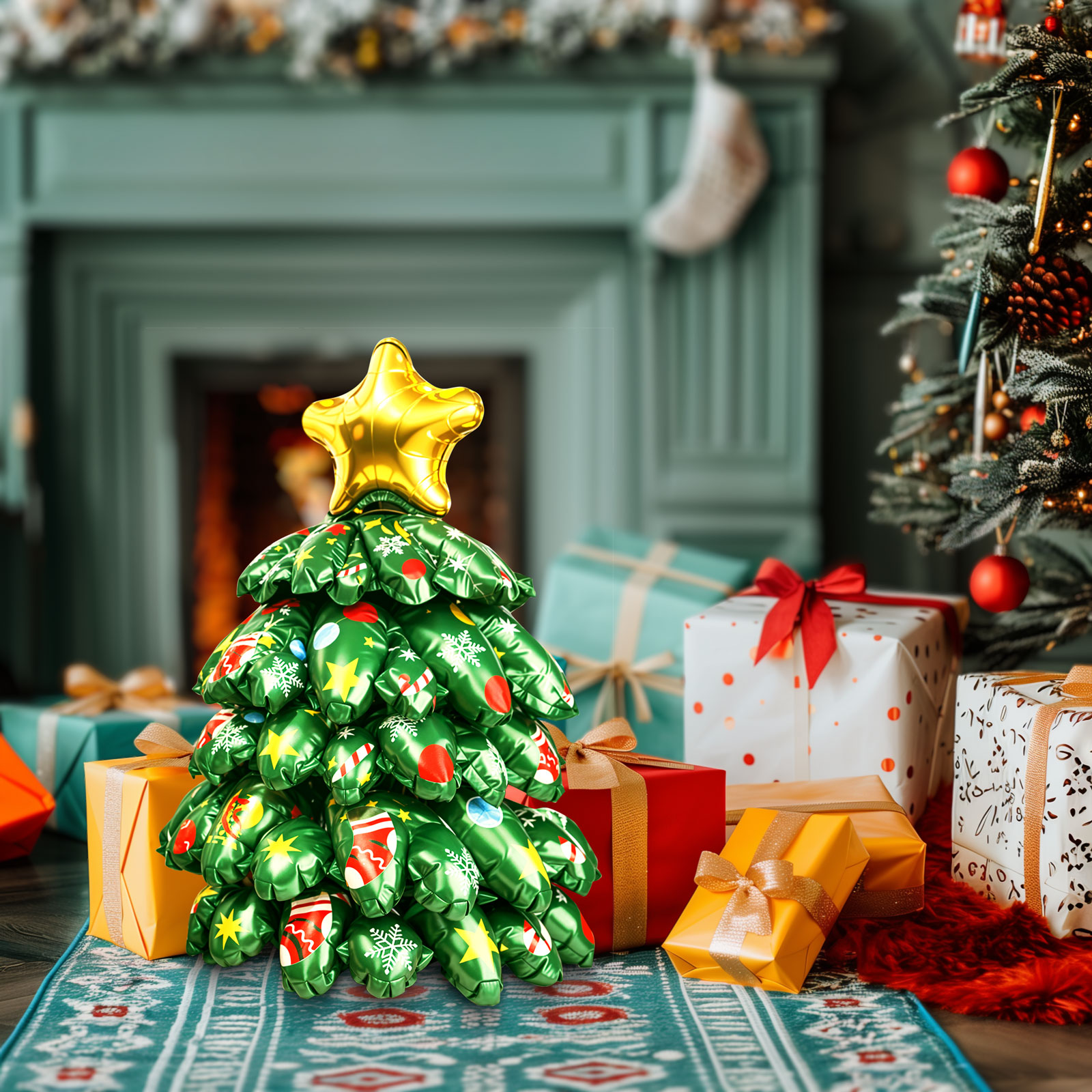 Balónky by neměly chybět v žádné vánoční výzdobě! Tento velký hliníkový balón ve tvaru vánočního stromku je vynikajícím dárkem pro děti, ale lze jím také ozdobit různé místnosti. Vánoční stromek složený z několika balónků poskytuje nádherný vizuální zážitek v 360 stupních. Nafukovací tyčinka je součástí balení pro snadné nafukování.
