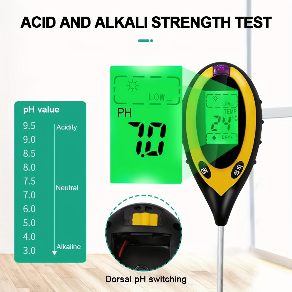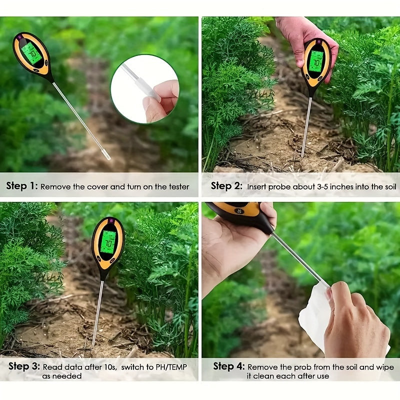 (Objevte) Nový rozměr testování půdy se 4-v-1 Sada na testování půdy! Tento praktický nástroj vám umožní snadno zkontrolovat hodnotu pH, vlhkost, teplotu a světelné podmínky půdy ve vaší zahradě. Sada se snadno používá a nevyžaduje speciální odborné znalosti, takže profesionální testování půdy je dostupné pro každého. Nezáleží na tom, zda jste zkušený zahradník nebo nadšený začátečník, tento nástroj vám pomůže pochopit potřeby vašich rostlin a zajistí, že budou růst v co nejlepších podmínkách.