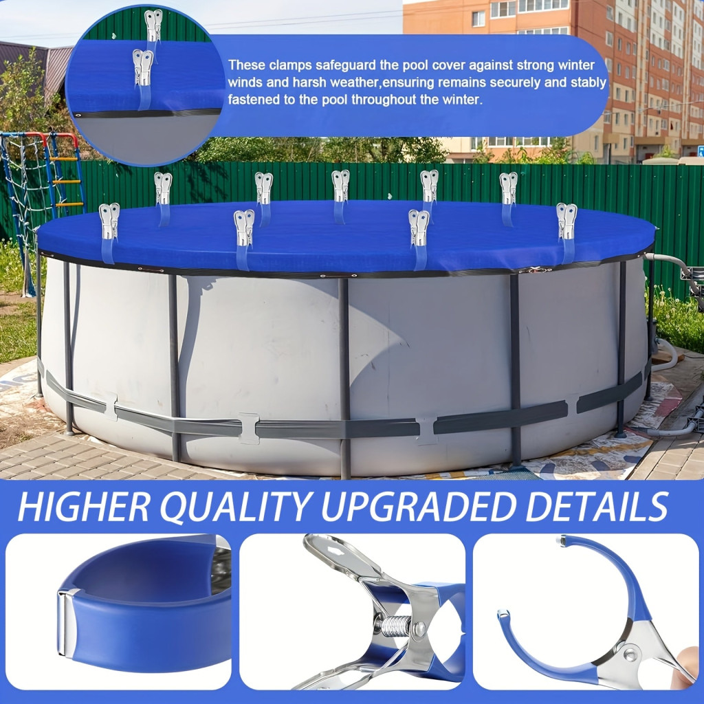 (Dlouhá životnost) Spony vyrobené z nerezové oceli nekorodují a zachovávají si svůj původní stav v jakémkoli prostředí. Díky jejich snadnému použití můžete rychle a jednoduše upevnit kryt bazénu. Ideální volba pro domácí i profesionální použití, protože kvalita a funkčnost jdou ruku v ruce.
