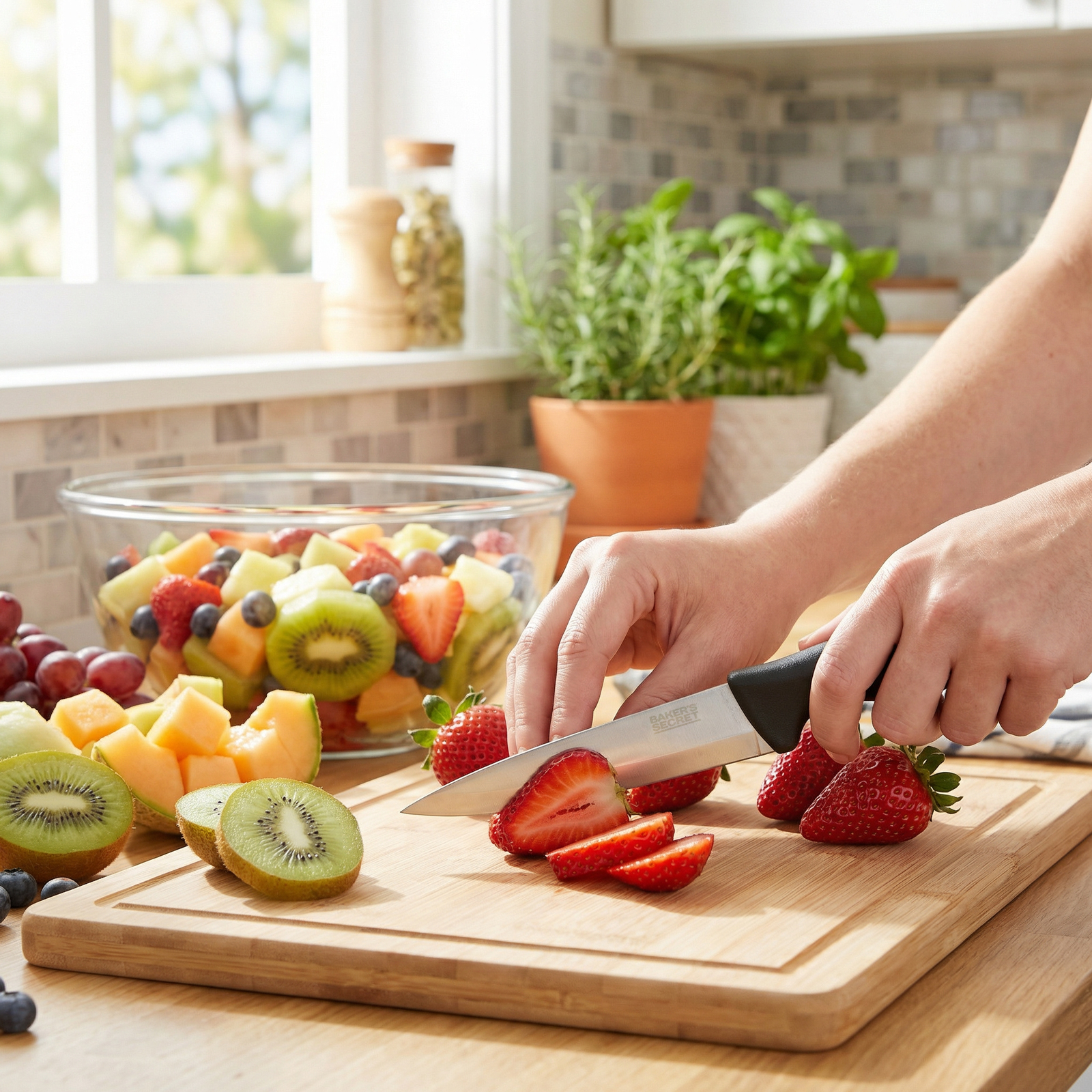 Kuchařský nůž je nezbytným nástrojem v každé kuchyni, ať už jde o krájení, sekání nebo porcování. Ostrá čepel z nerezové oceli zajišťuje přesné a čisté řezy, díky čemuž je příprava zeleniny, masa a ovoce rychlejší a jednodušší. Ergonomická, protiskluzová rukojeť poskytuje pohodlný úchop, a tím i bezpečné a stabilní používání i při delší práci.