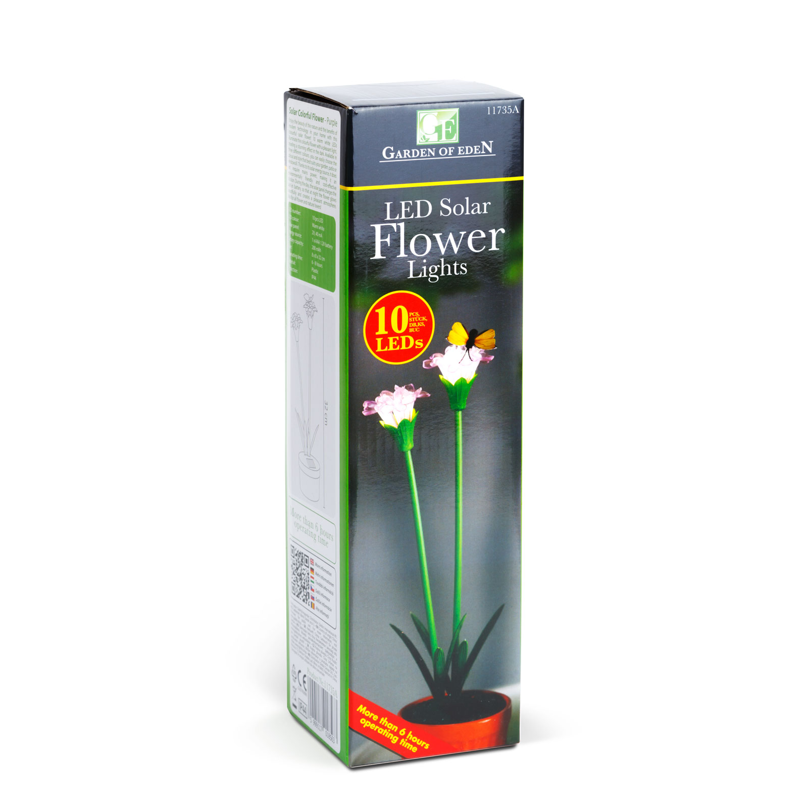 Barevné solární květy - 8 x 8 x 32 cm - 10 teplých bílých LED - fialová