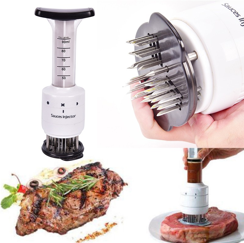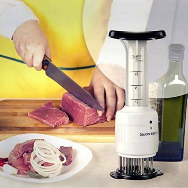 Je to velmi praktický a užitečný nástroj, pomocí kterého můžeme snadno vstříknout marinádu do masa, mezi vlákna masa.