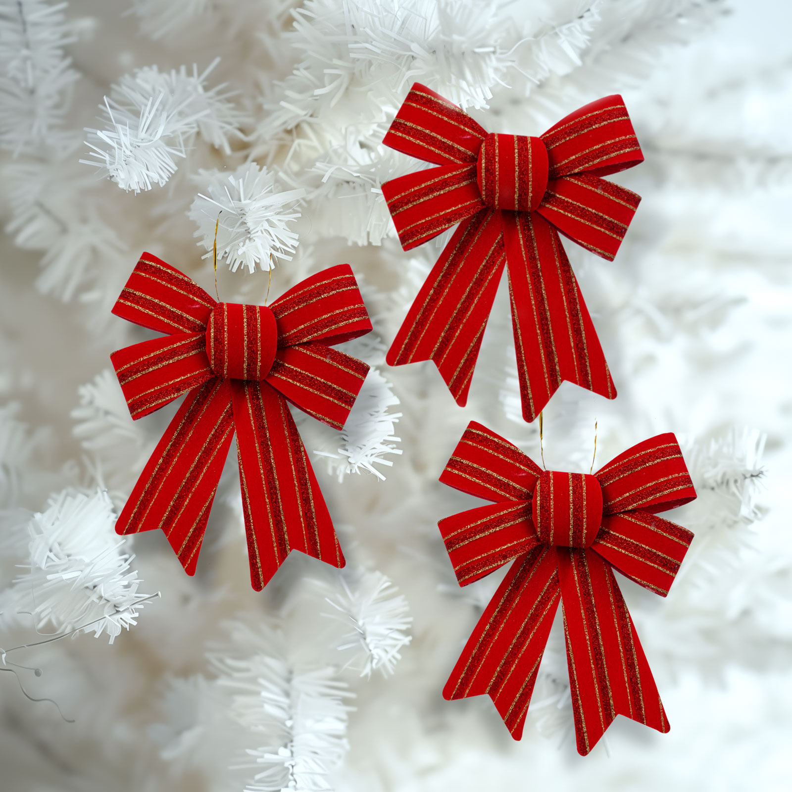 Dekorační mašle – třpytivá, červená – 10 x 13 cm – 3 ks / balení