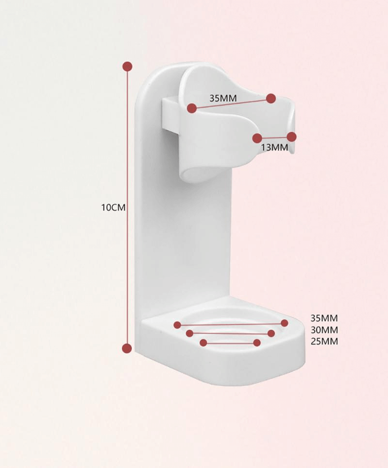 Může být připevněn na zeď pomocí lepicího materiálu, takže není potřeba vrtat. Lepidlo vydrží dlouhodobě a díky otevřenému dnu v něm nezůstane voda (doporučuje se umístit blíže k umyvadlu).