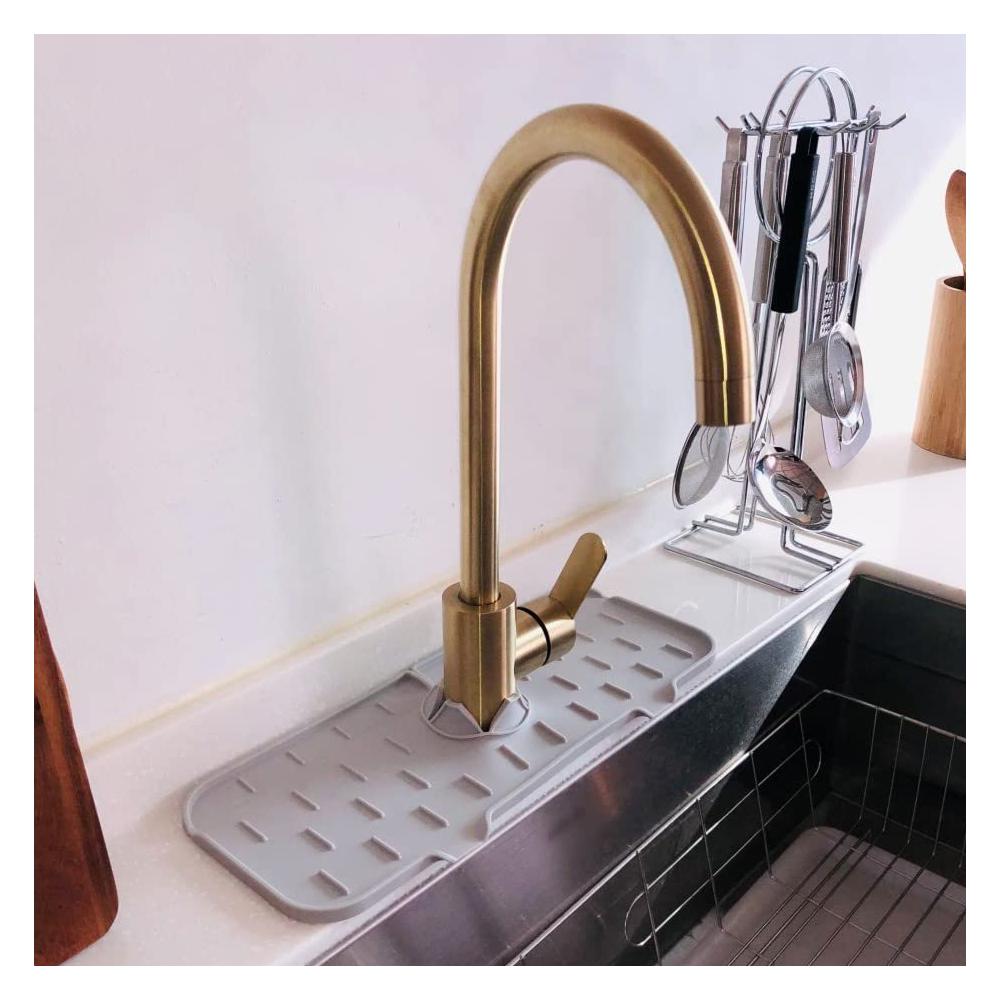 Náš produkt má speciální, ovinovací design, ideální pro umístění kolem vodovodní baterie. Udržuje mycí plochu čistou a suchou. Okamžitě absorbuje stříkající vodu a zabraňuje jejímu hromadění. Gumová spodní část zabraňuje protékání vody pod něj. Uschne na vzduchu za méně než hodinu, není třeba jej často čistit, stačí několik minut s čisticím prostředkem.