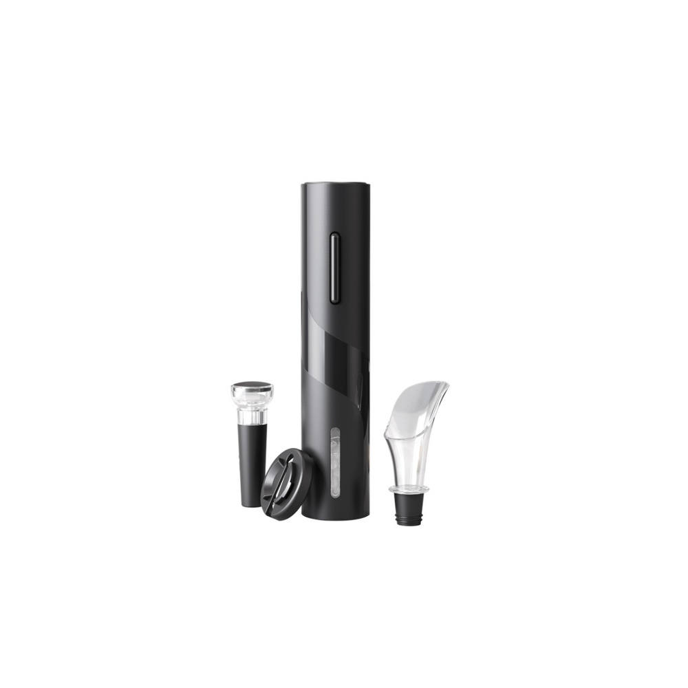 Set obsahuje elektronickou vývrtku, ořezávač na fólii, nálevku s provzdušňovačem a vakuovou zátku.