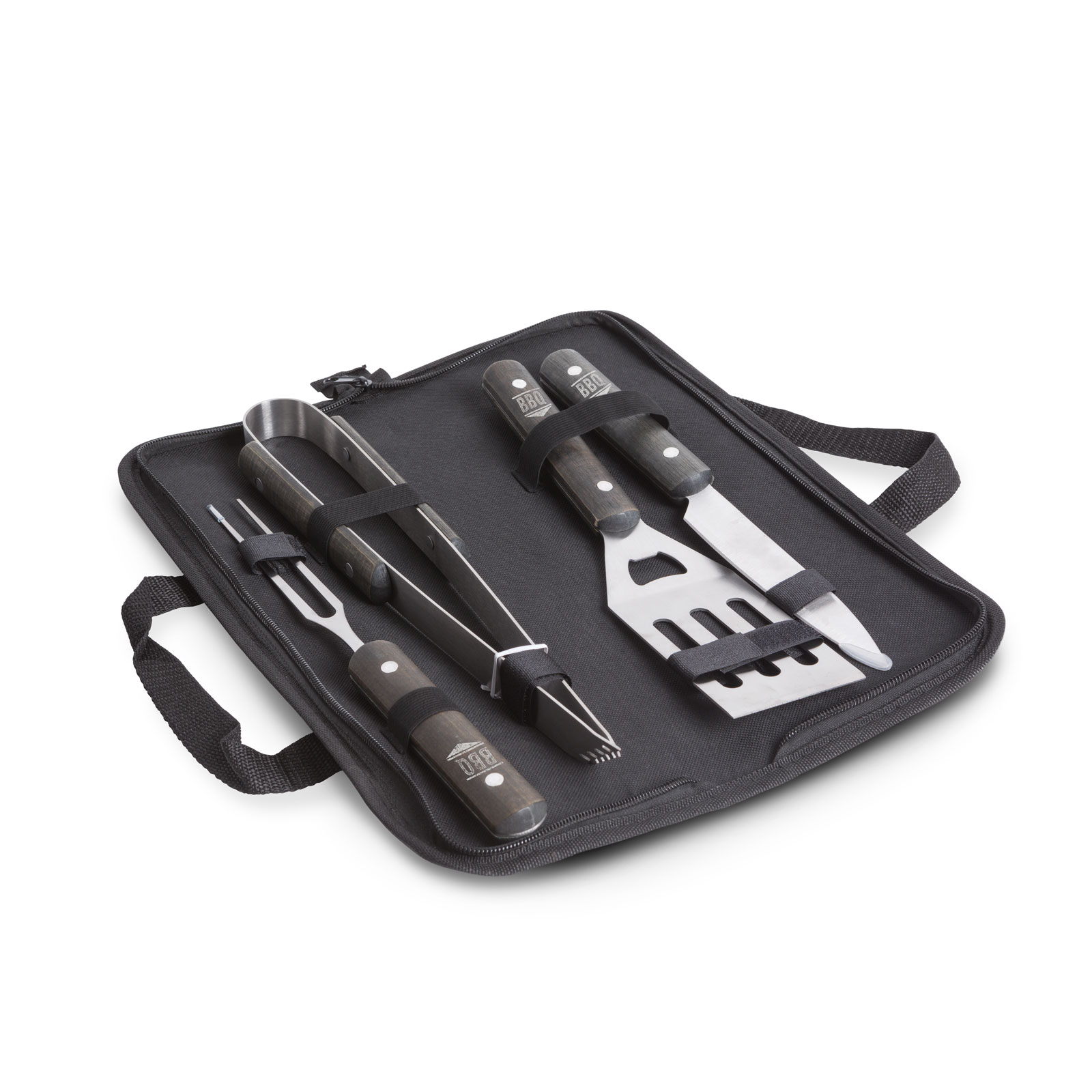 Grilovací sada – 4dílná – s dřevěnou rukojetí, v tašce