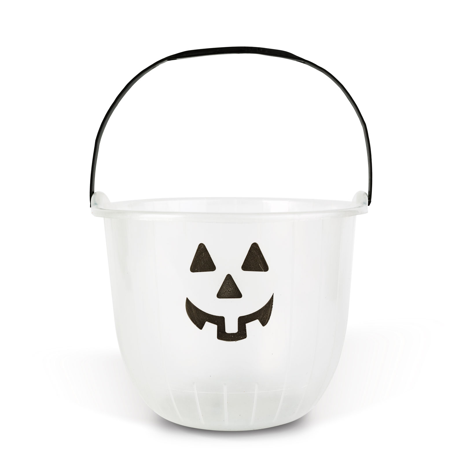 Vytvořte si doma jedinečnou halloweenskou atmosféru s tímto vědrem zdobeným dýňovým obličejem! K dispozici ve dvou různých provedeních: strašidelný duch a klasický dýňový obličej. Vyrobeno z odolného plastu, lehké, ale pevné. Ideální volba pro malé i velké.