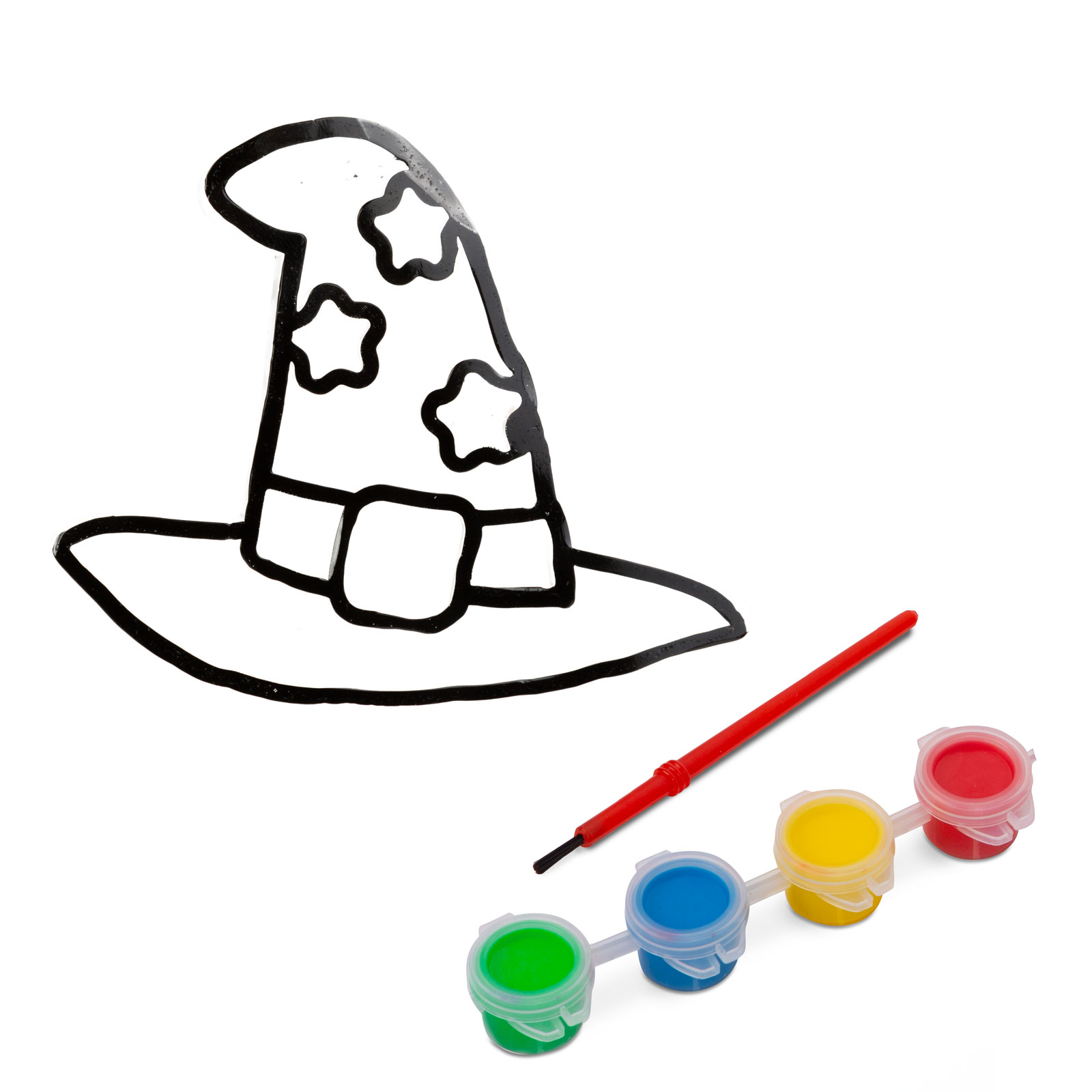 Halloweenská vybarvovací dekorace na okno – čarodějnický klobouk – 4 barvy – se štětcem