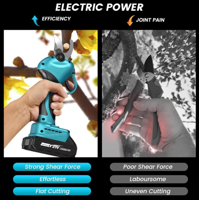 Akumulátorové zahradní nůžky vám umožní rychle a efektivně stříhat vinnou révu, ovocné stromy, živé ploty a keře.