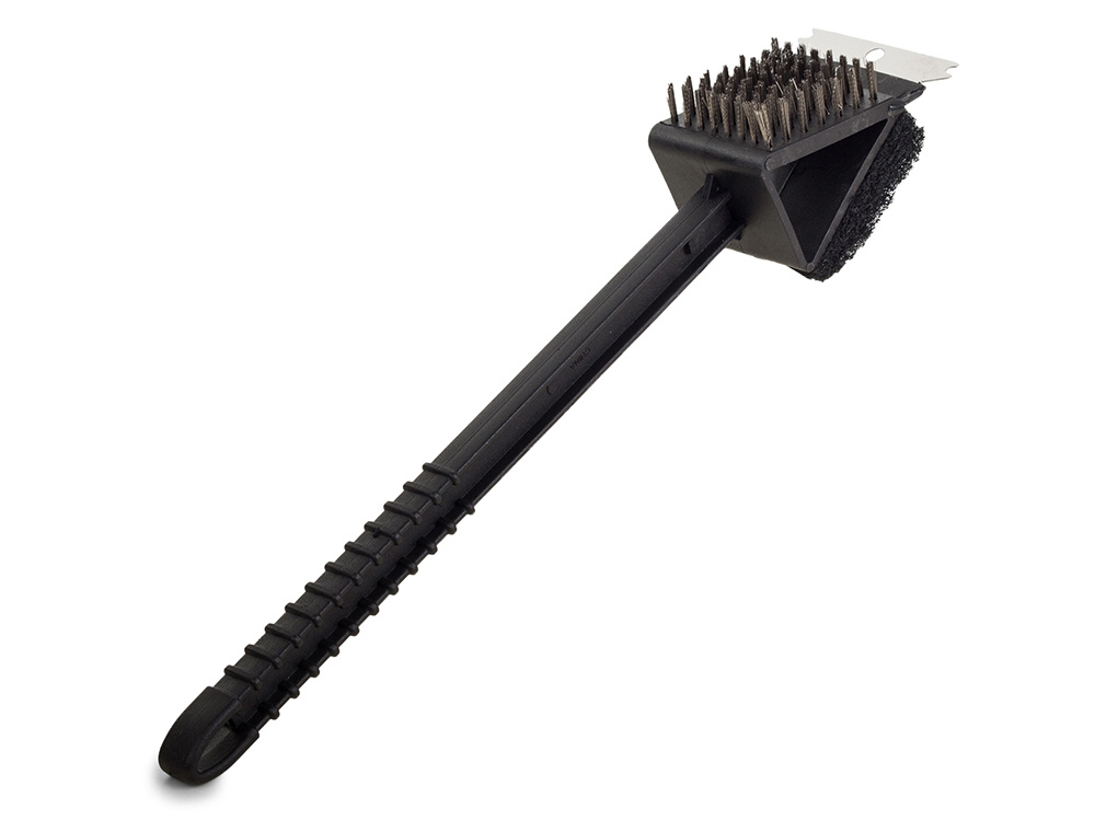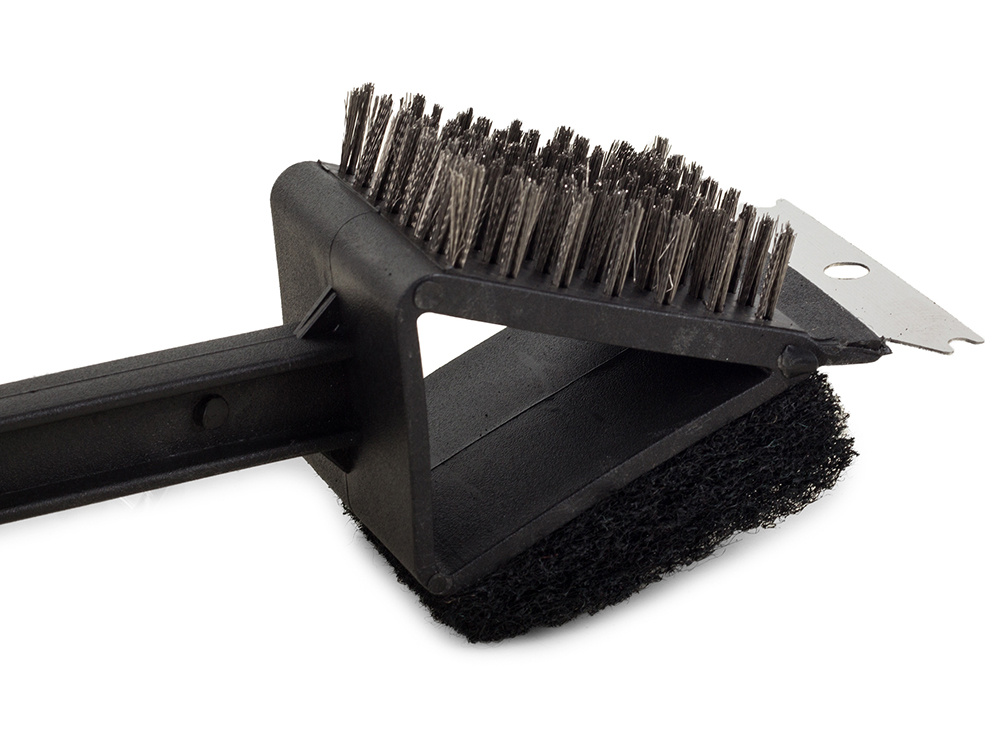 Pomocí kartáče rychle a efektivně odstraníte ztuhlou mastnotu a saze z grilovacího roštu. Vyrobeno z odolného plastu, vybaveno ocelovými dráty, škrabkou a čistící houbou.
