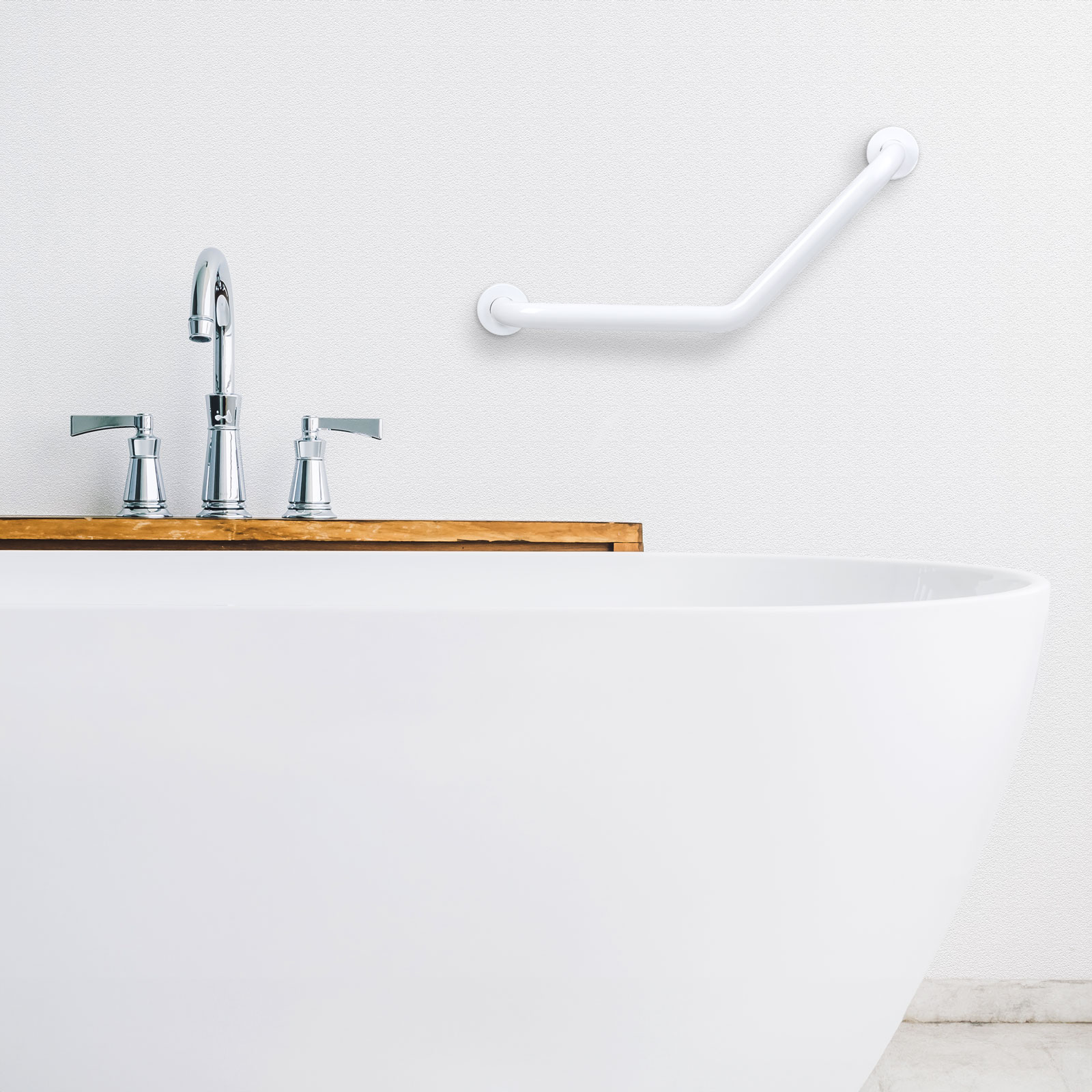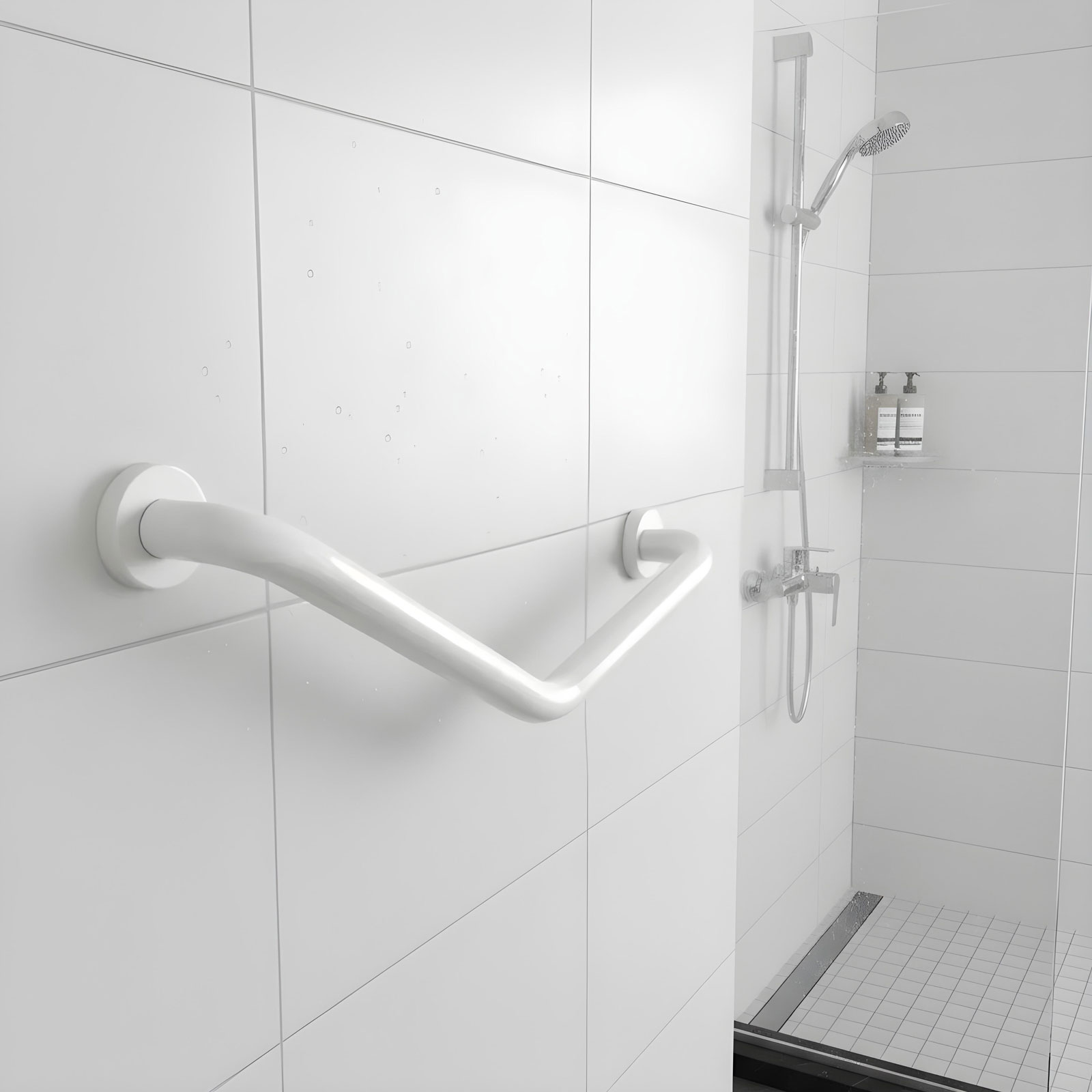 Koupelnové madlo – ohnuté v 45° úhlu – nerezová ocel – bílé – 25 + 25 cm