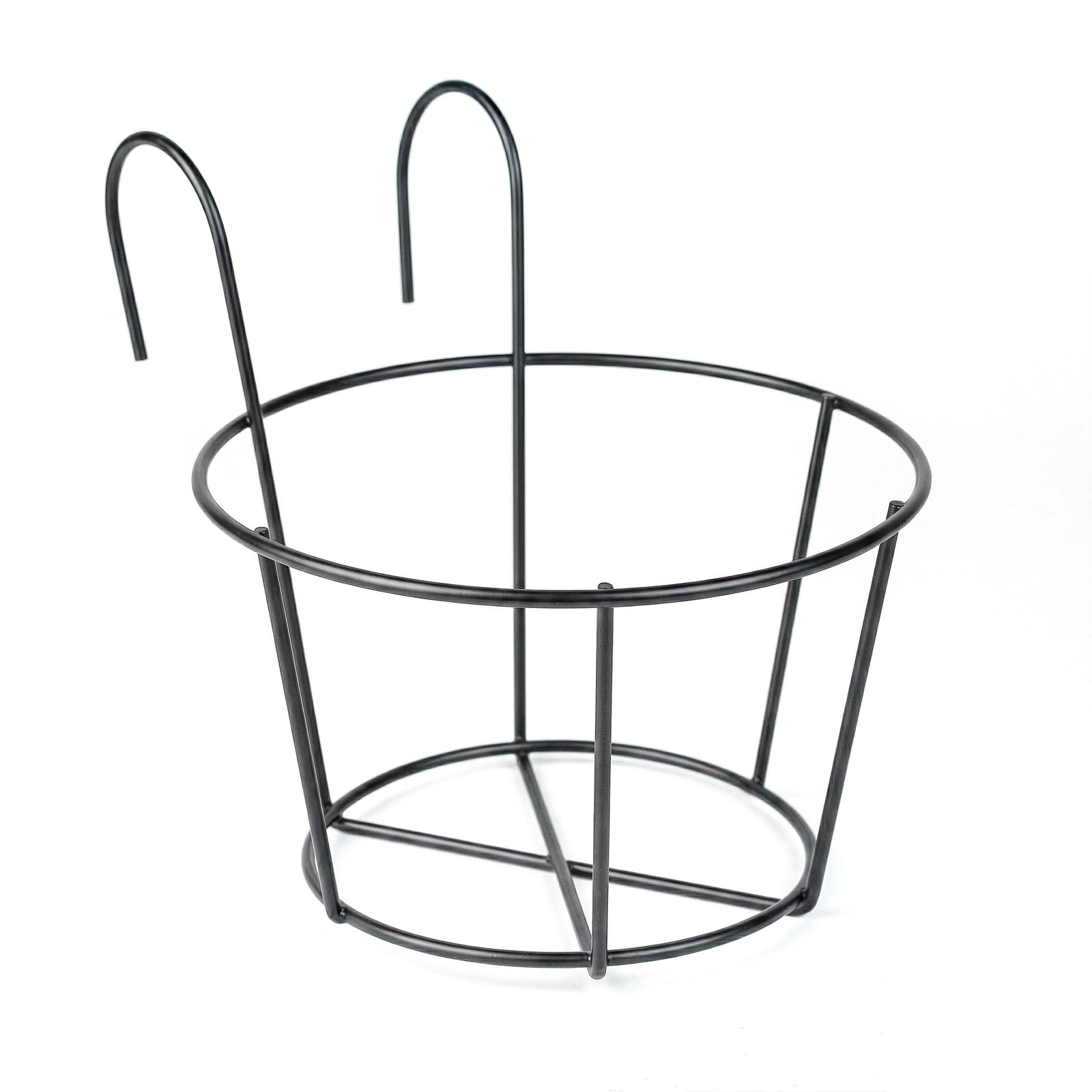 Kovový koš k zavěšení na balkonové zábradlí – pro upevnění květináčů – 18 cm – černý