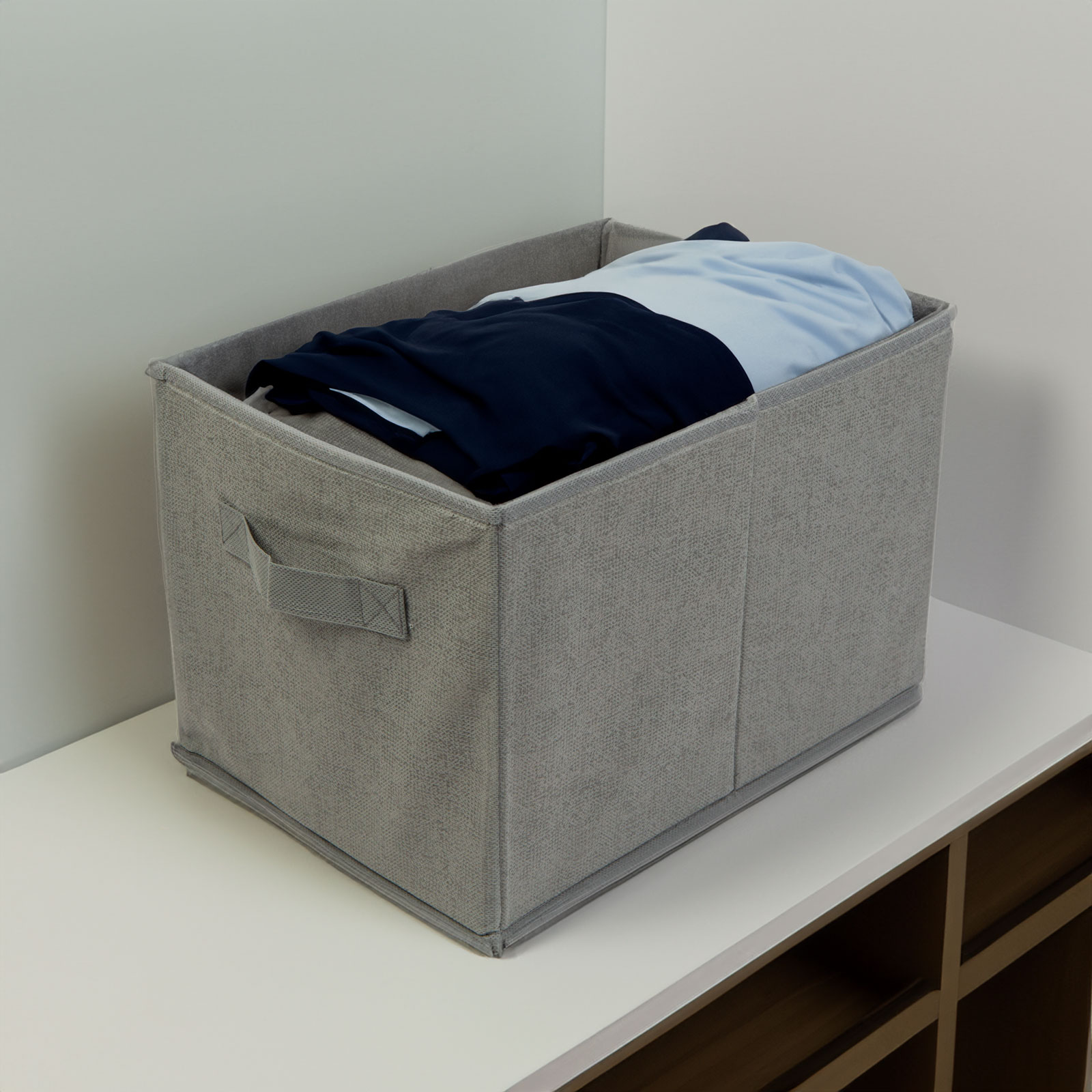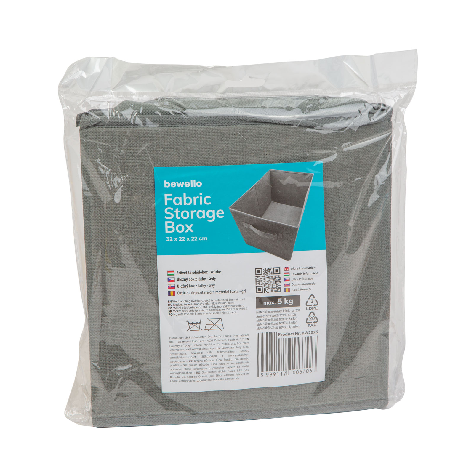 - 1 ks Látkový úložný box - 32 x 22 x 22 cm - šedý
