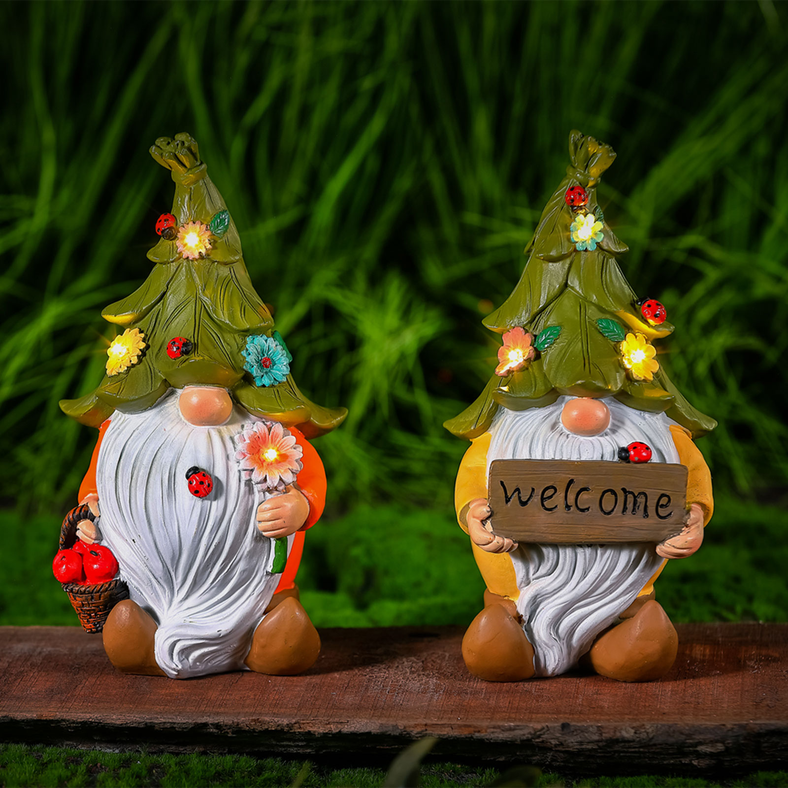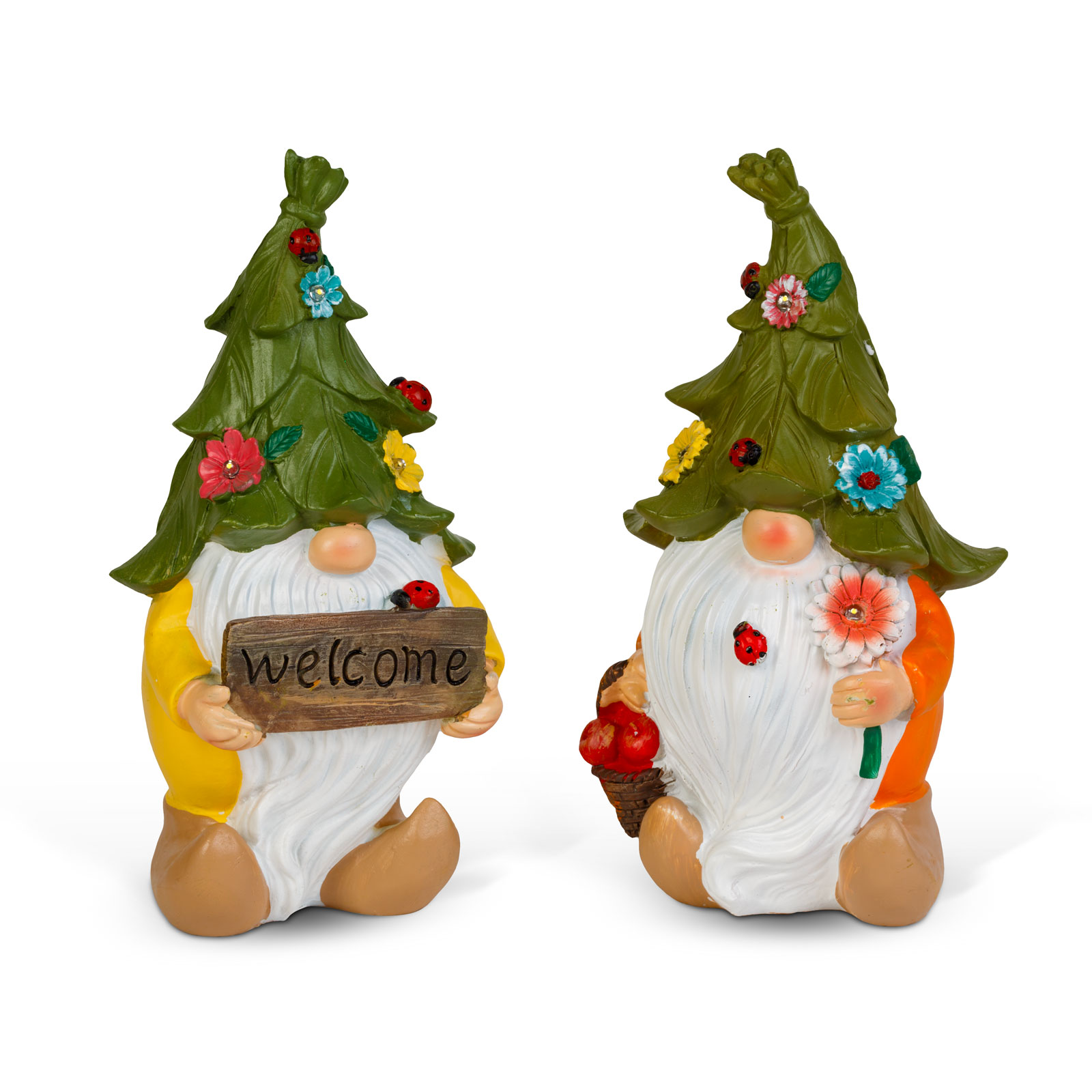 LED solární skřítek – 2 typy – teplá bílá LED – pryskyřice – 10 x 8,5 x 18,5 cm