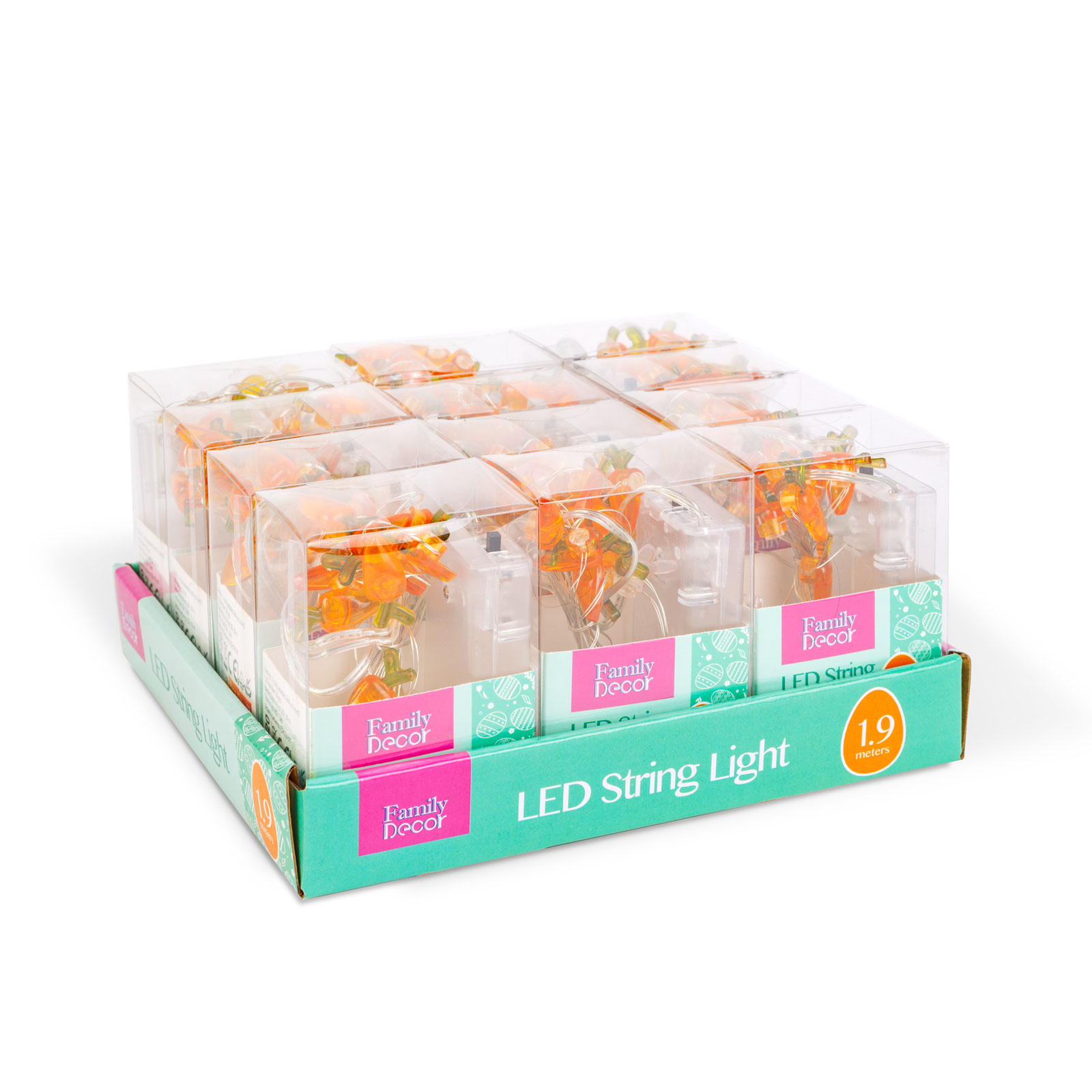 - 1 ks LED světelný řetěz - zajíc a mrkev - 2 m - 20 LED - 2 x AA