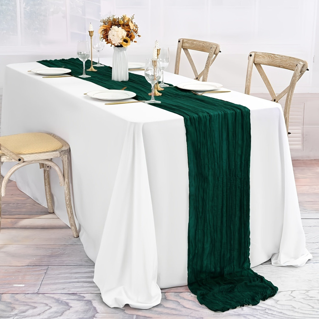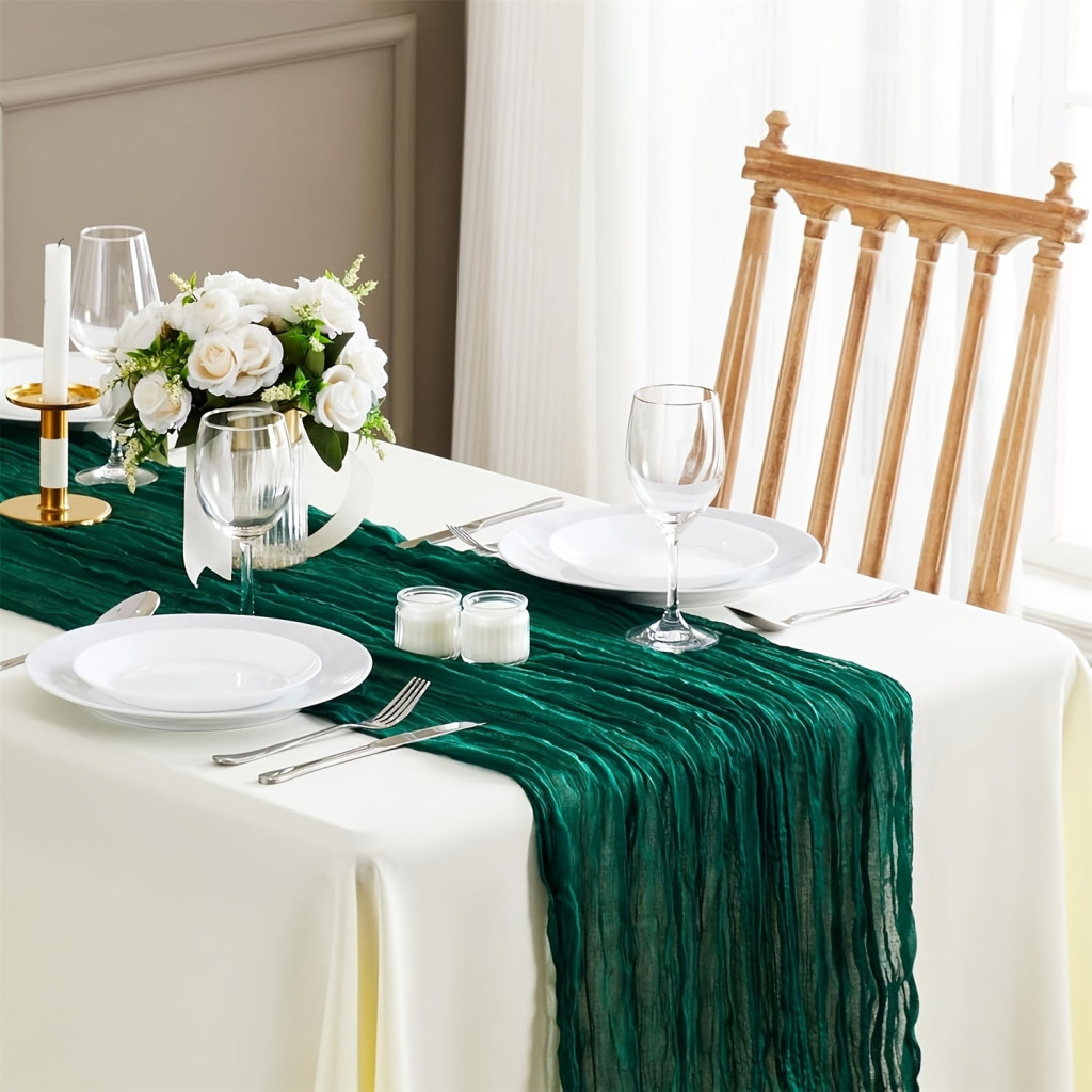 Objevte novou dimenzi luxusu a elegance se smaragdově zeleným sýrovým ubrouskem jako stolovým běžcem! Tento ohromující stolový běžec je ztělesněním sofistikovanosti a stylu, který okamžitě promění každou jídelnu. Smaragdově zelený odstín je živý a osvěžující, dokonale se hodí do každého interiéru, ať už moderního nebo klasického. Jemně tkaný materiál je na dotek měkký a hedvábný, takže poskytuje výjimečný zážitek nejen na pohled, ale i na dotek.