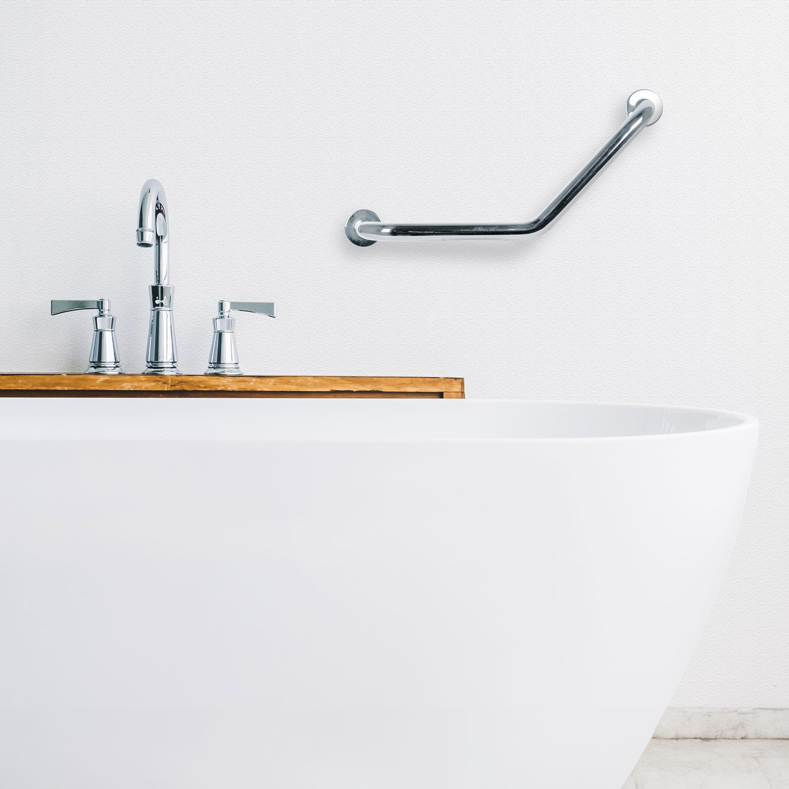 Tento 45° ohnutý nástěnný madlo je praktickým a bezpečným řešením do koupelny a WC. Výborně se hodí pro bezbariérový přístup na toaletách. Usnadňuje vstup do vany starším osobám, těhotným ženám, osobám s omezenou pohyblivostí a také dětem. Je vyrobeno z nerezové oceli s chromovaným povrchem, díky čemuž se snadno čistí a zároveň je estetické. Balení obsahuje všechny potřebné montážní doplňky.