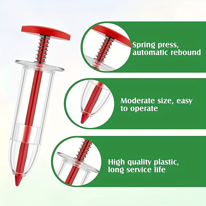 Mini ruční secí stroj ve tvaru injekční stříkačky je tou nejlepší volbou, pokud milujete zahradničení! Praktický, snadno použitelný a zaručeně vám pomůže, aby vaše zahrada byla krásná! Nenechte si ujít tuto fantastickou pomůcku, která usnadňuje setí semen a péči o rostliny!