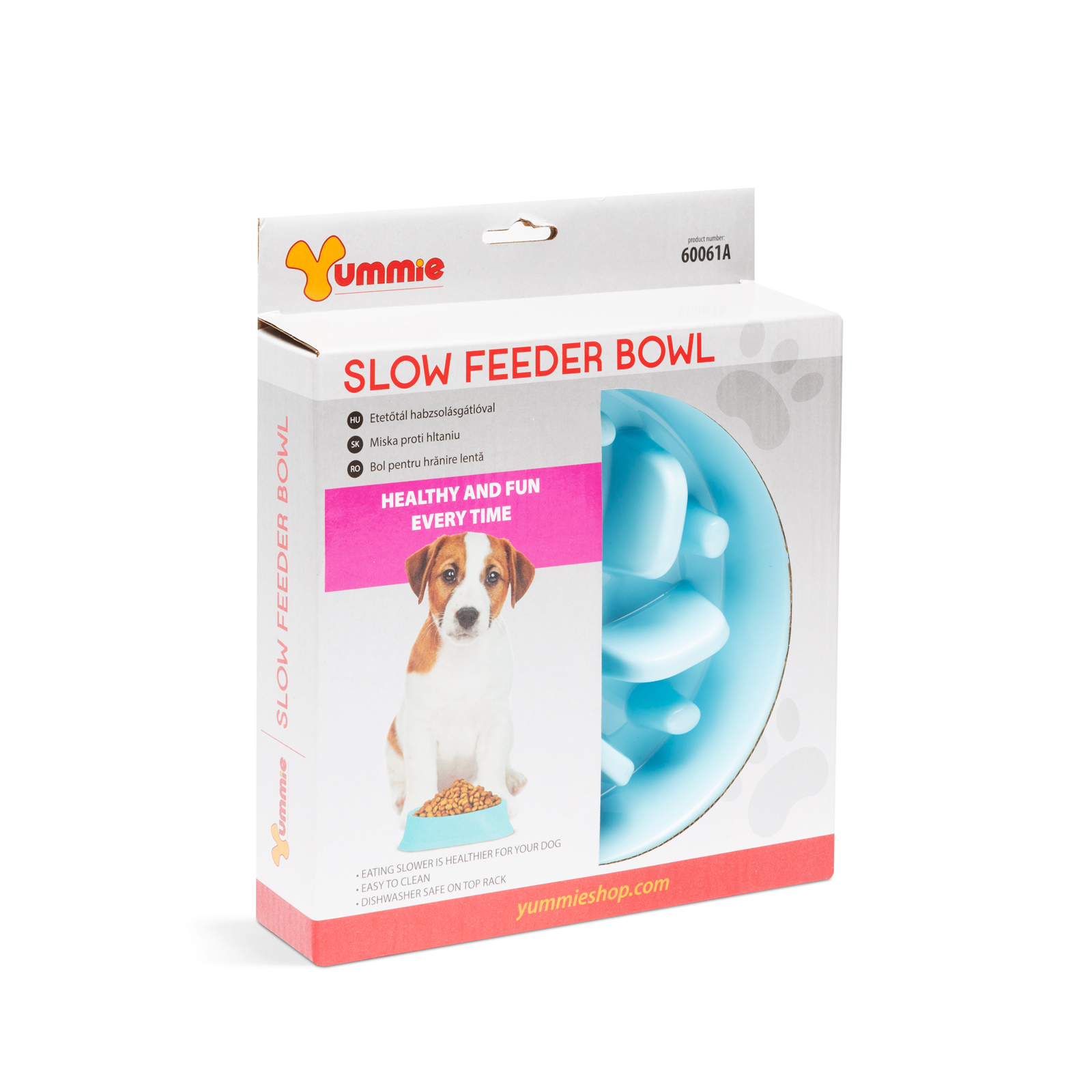 Plastová miska se speciálním provedením, které zabraňuje rychlému hltání. Díky výstupkům na dně misky není štěně schopné rychle hltat, čímž se předchází možným problémům s trávením a nadýmáním. Hravou formou si pes může po troškách vybírat jídlo pouze z různých výšek misky, čímž se zpomalí a zabrání nadměrnému dennímu příjmu potravy.