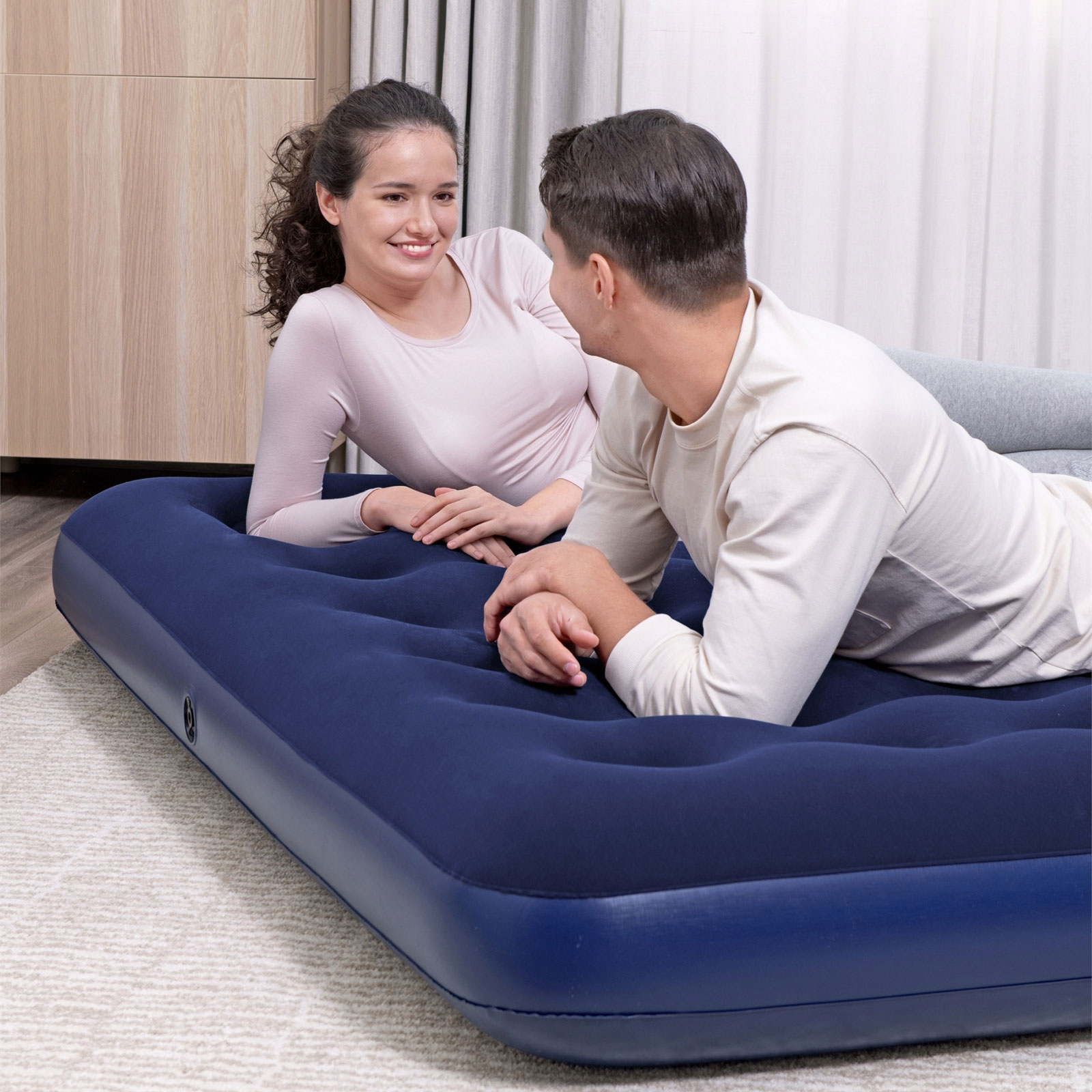 Nafukovací matrace - dvoumístná, velur - modrá - 203 x 183 x 22 cm