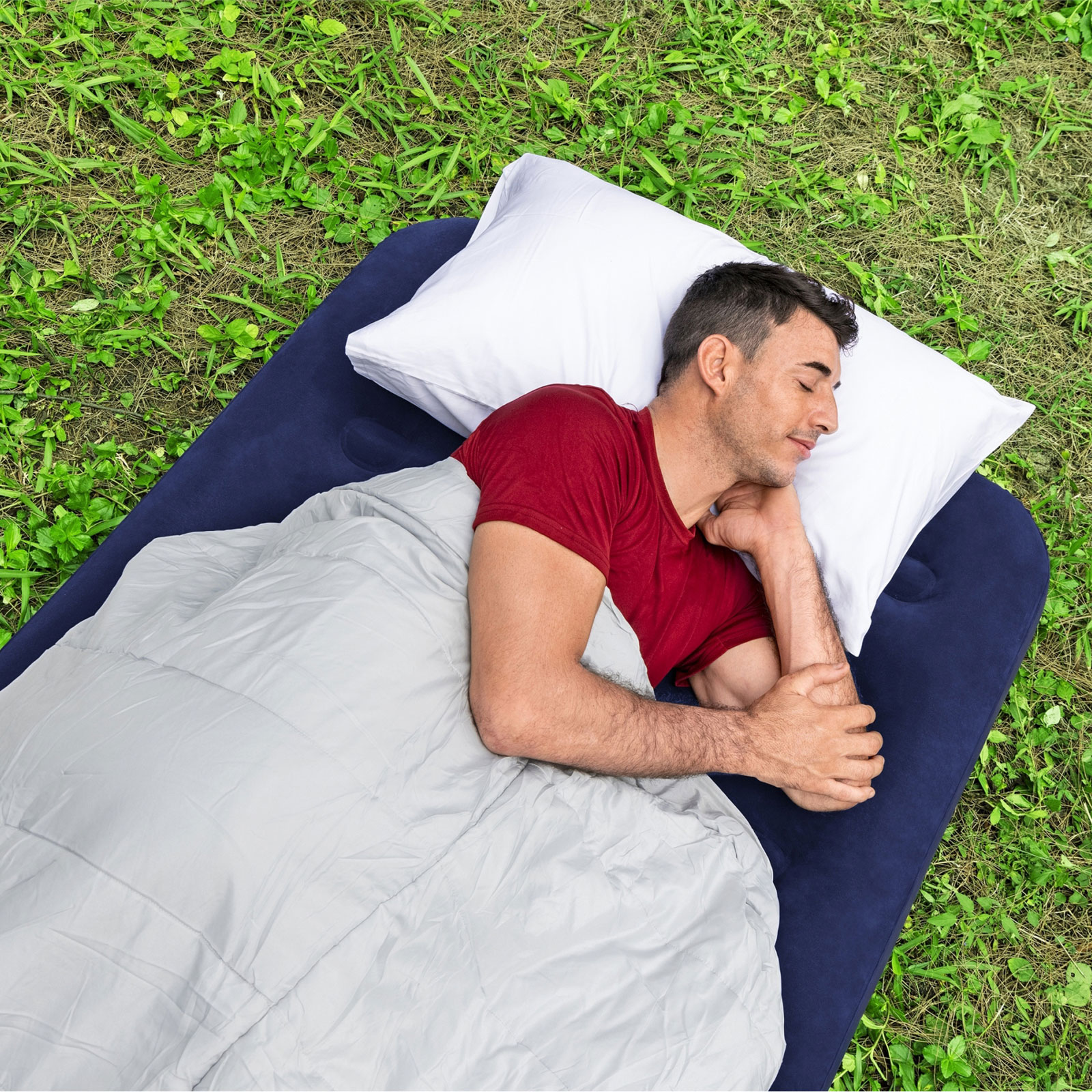 Nafukovací matrace – jednolůžková, velur – modrá – 188 x 99 x 22 cm