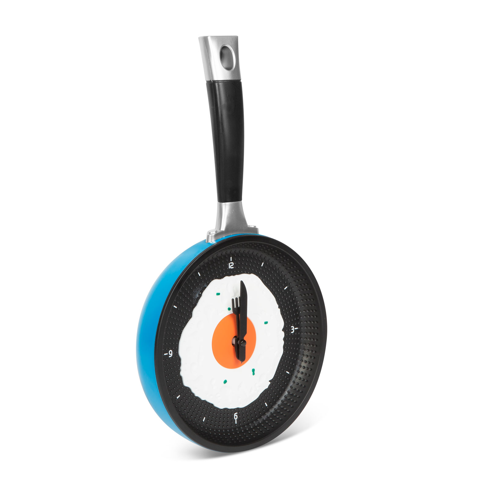 Tyto nástěnné hodiny ve tvaru pánve nesmí chybět v žádné kuchyni kuchaře. Díky svému designu Vás oklamou, protože vypadají přesně jako volské oko připravené v klasické pánvi. Hodinová a minutová ručička jsou stylově nahrazeny vidličkou a nožem.