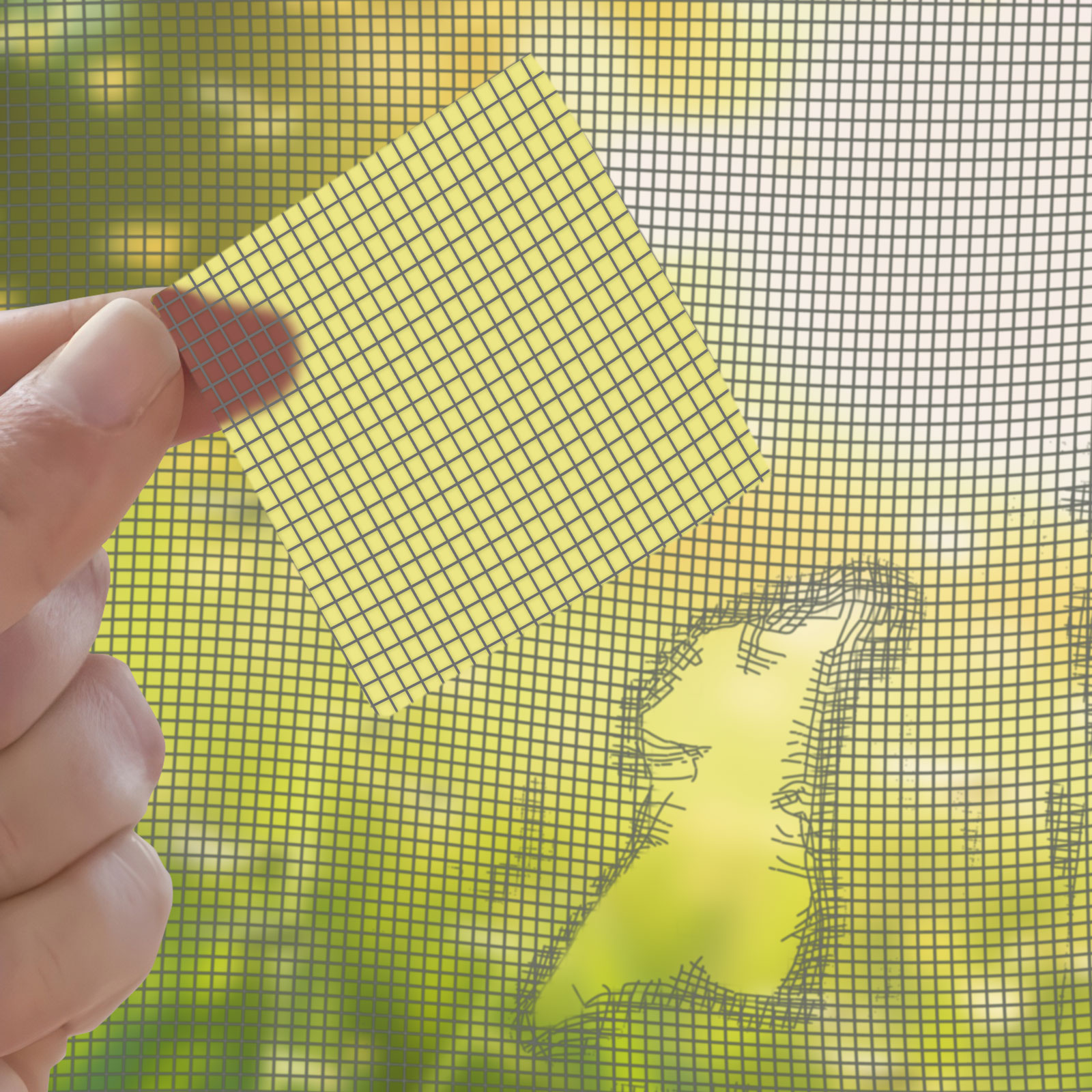 Tato samolepicí páska se používá k opravě poškozených, roztržených sítí proti hmyzu. Poškozenou část můžete opravit libovolnou délkou pásky odstřiženou z role. Možné jsou také opravy záplatováním. Šedá je nejběžnější barvou na míru vyrobených sítí, což z ní činí ideální nástroj pro opravu většiny sítí proti hmyzu.