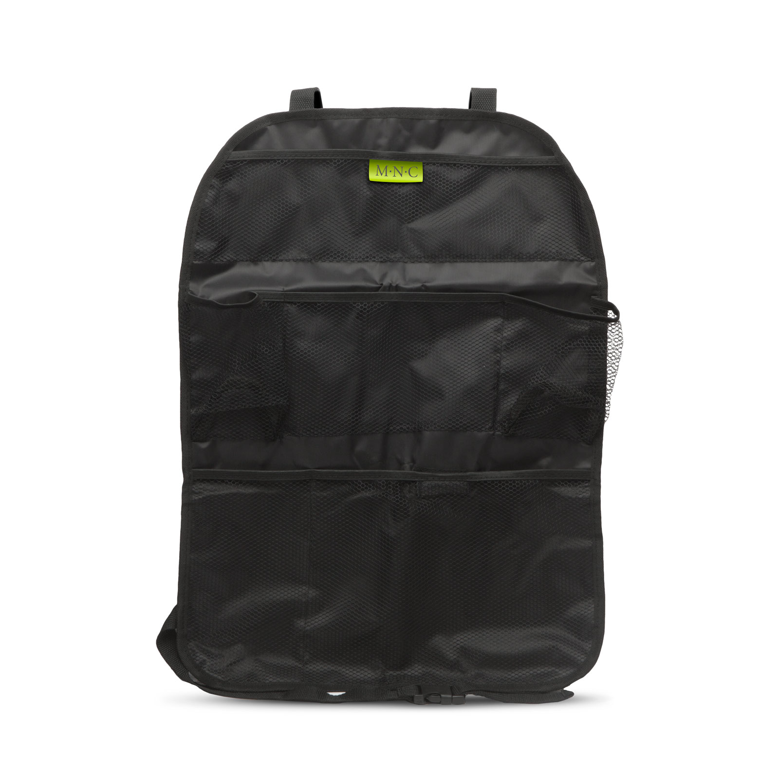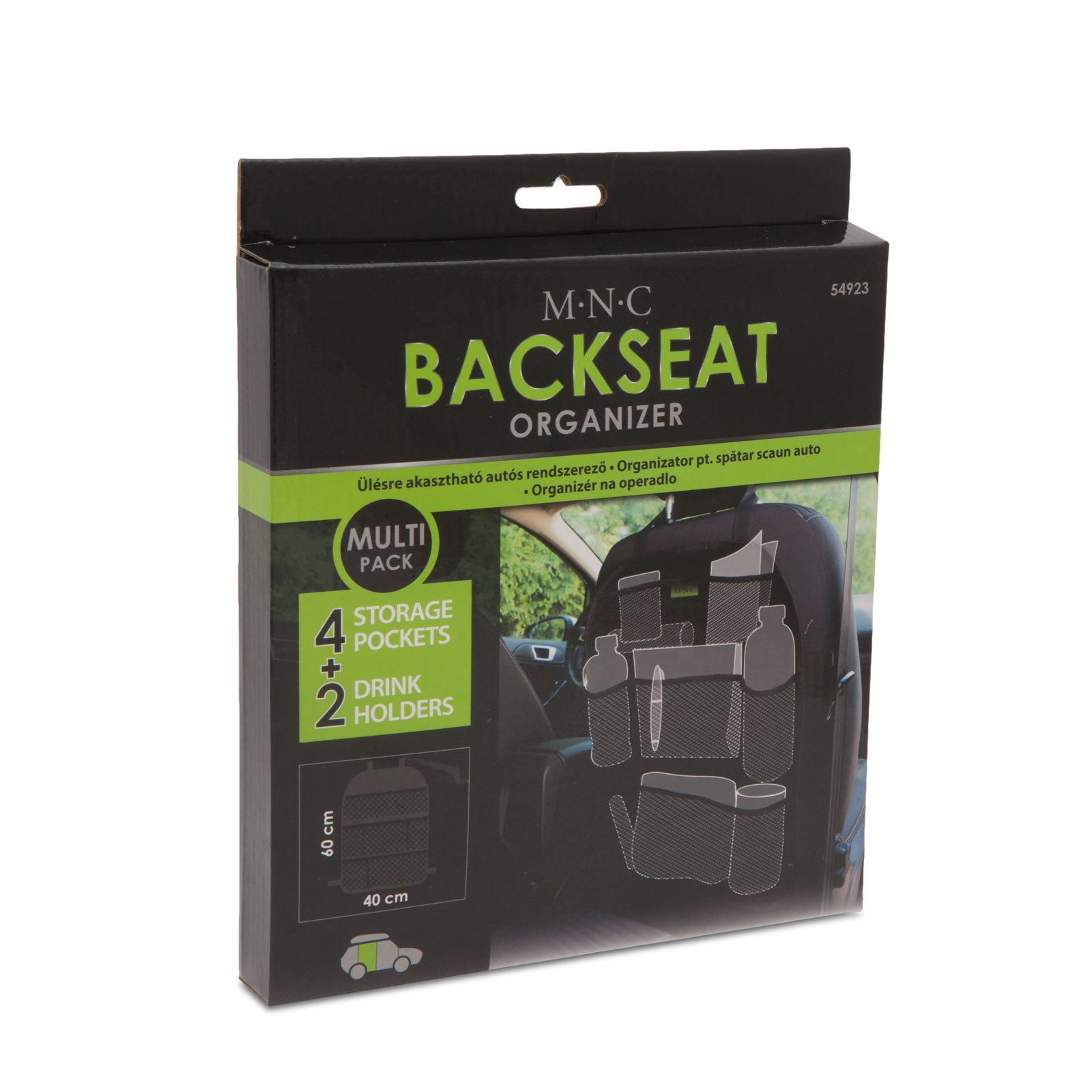 Máte málo úložného prostoru v autě? Nemáte rádi, když se předměty volně pohybují při brzdění nebo zatáčení? Pak potřebujete tento organizér. Jednoduchá montáž, snadno se připevní k opěradlům předních sedadel (i k oběma). Díky síťovaným kapsám je obsah přehledný, do kapes různých velikostí lze snadno uložit potřebné věci na dlouhou cestu.