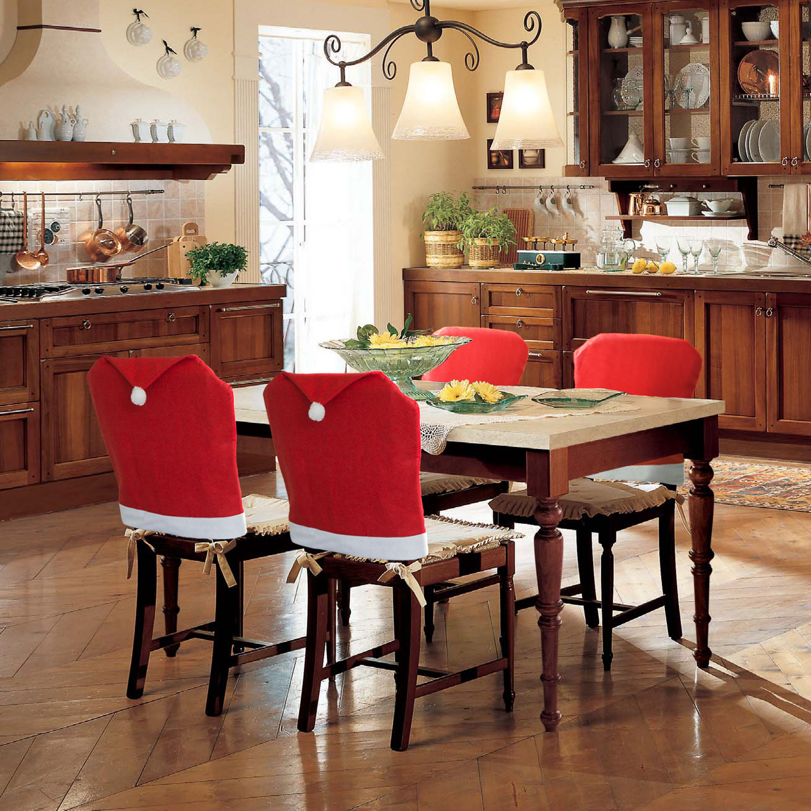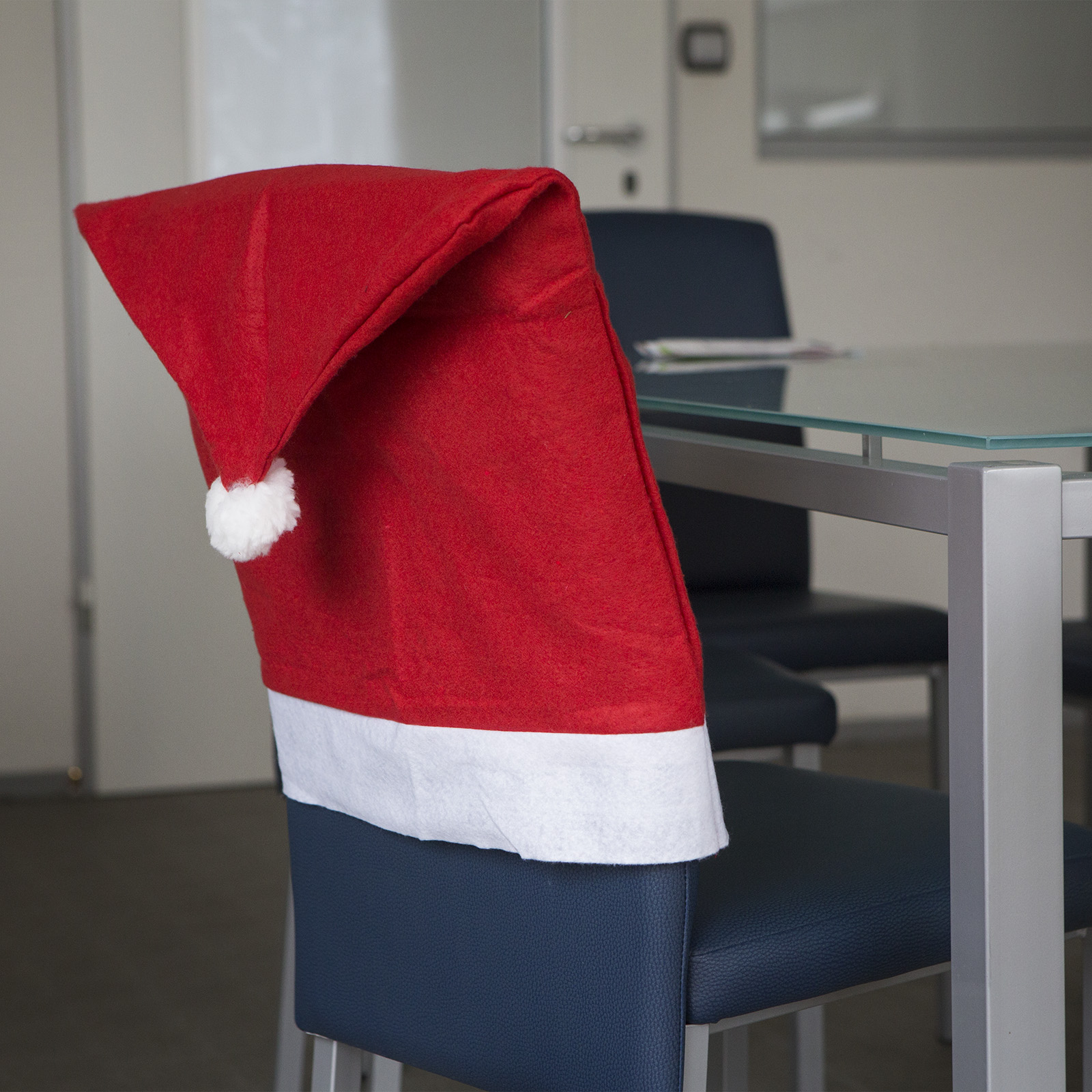 Ozdoba ve tvaru mikulášské čepice určená na sváteční židle.