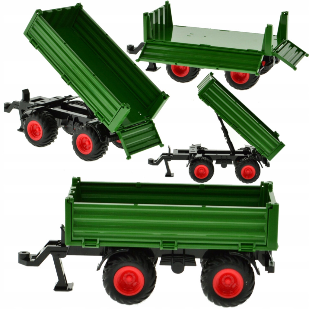 Tento klasický design hračkářského přívěsu je dokonalým doplňkem k jakémukoli zemědělskému hračkářskému traktoru. Robustní, zelený plastový rám a funkční prvky – jako například sklopná plošina – umožňují přepravu a vykládání různých „nákladů“, čímž ještě více zpřibližují herní zážitek realitě.