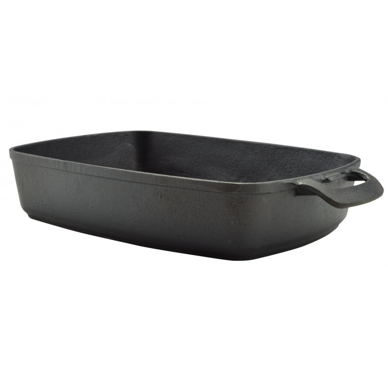 Použití: Před prvním použitím odstraňte rostlinný olej, který chrání před rzí. K tomu umyjte litinový pekáč v horké vodě s neutrálním tekutým čisticím prostředkem a osušte. Poté litinové nádobí potřete tukem nebo slaninou a důkladně zahřejte. Během používání se litinový pekáč velmi zahřeje! Doporučuje se používat kuchyňské rukavice.