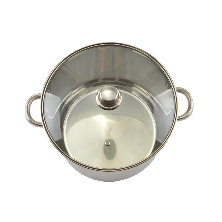 Rozměry: 30 cm vnitřní průměr, 32 cm průměr včetně okraje; 40 cm s držadly, 22 cm výška, 28 cm výška s poklicí