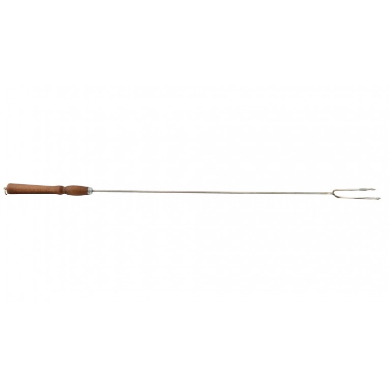 Vidlicový špíz z masivní nerezové oceli. Vidlice je navržena tak, aby se na její konec snadno napíchlo jídlo, ale během pečení nespadlo. Pomocí kroužku na konci dřevěné rukojeti lze špíz také zavěsit pro uskladnění.