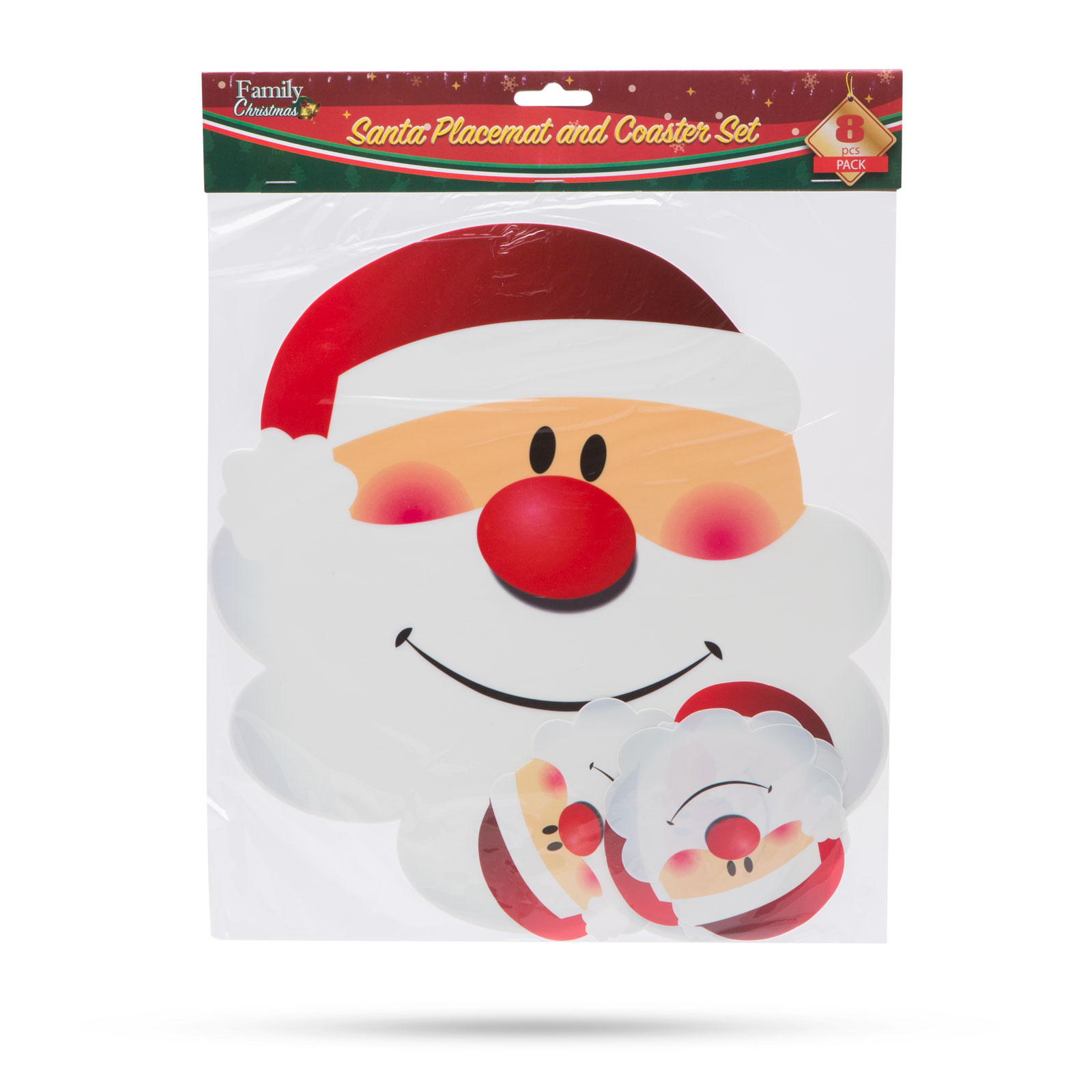 Vánoční podložka pod talíř a sklenici se vzorem Mikuláše. Sada obsahuje 4 podložky s Mikulášem pod talíř a 4 pod sklenici.