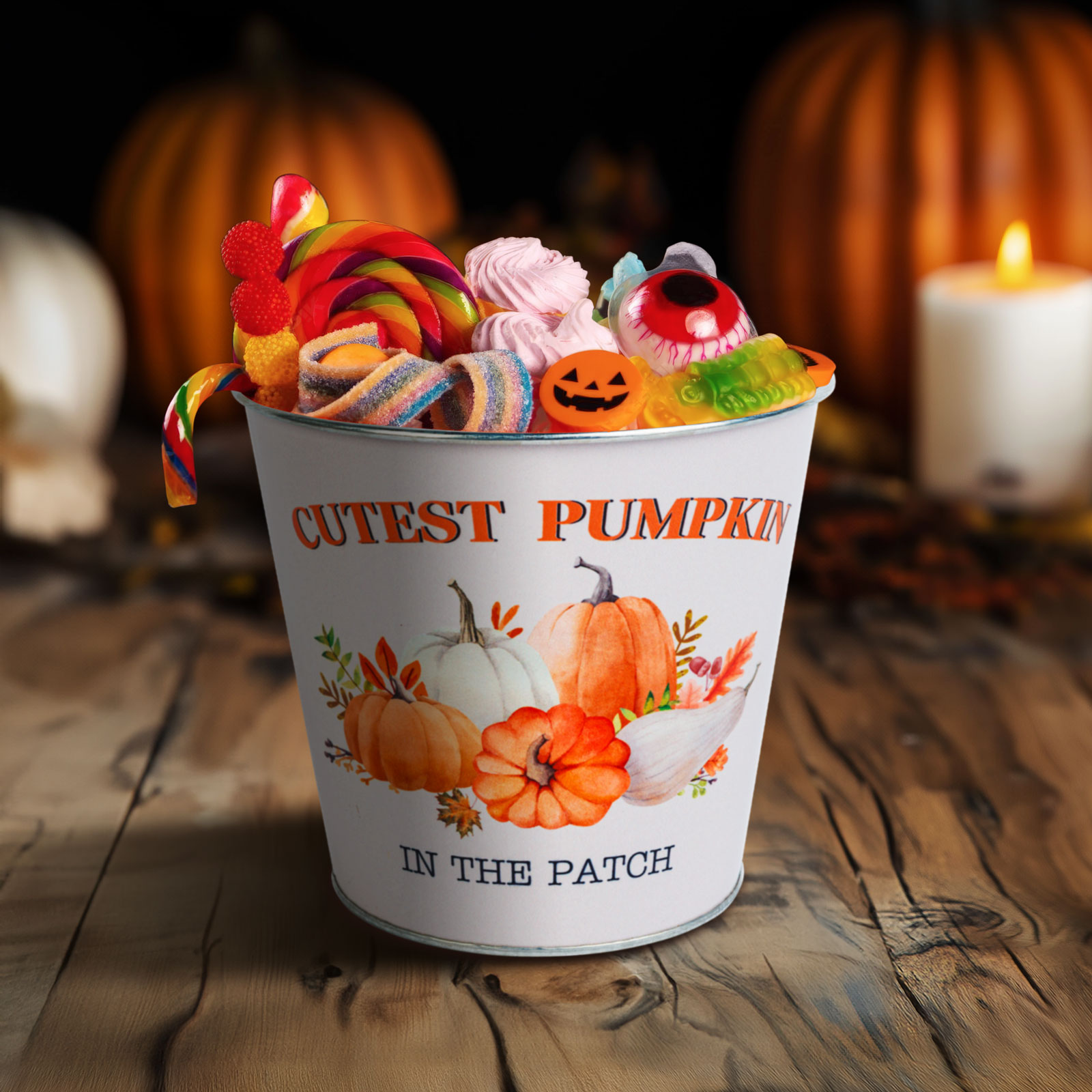 Oživte svůj domov touto útulnou podzimní dekorací! Kovový kbelík zdobený motivem dýně je perfektním doplňkem pro podzimní stolní dekoraci, halloweenskou výzdobu nebo dokonce jako kreativní dárek. Jeho styl a teplé barvy navodí příjemnou podzimní atmosféru v každé místnosti.