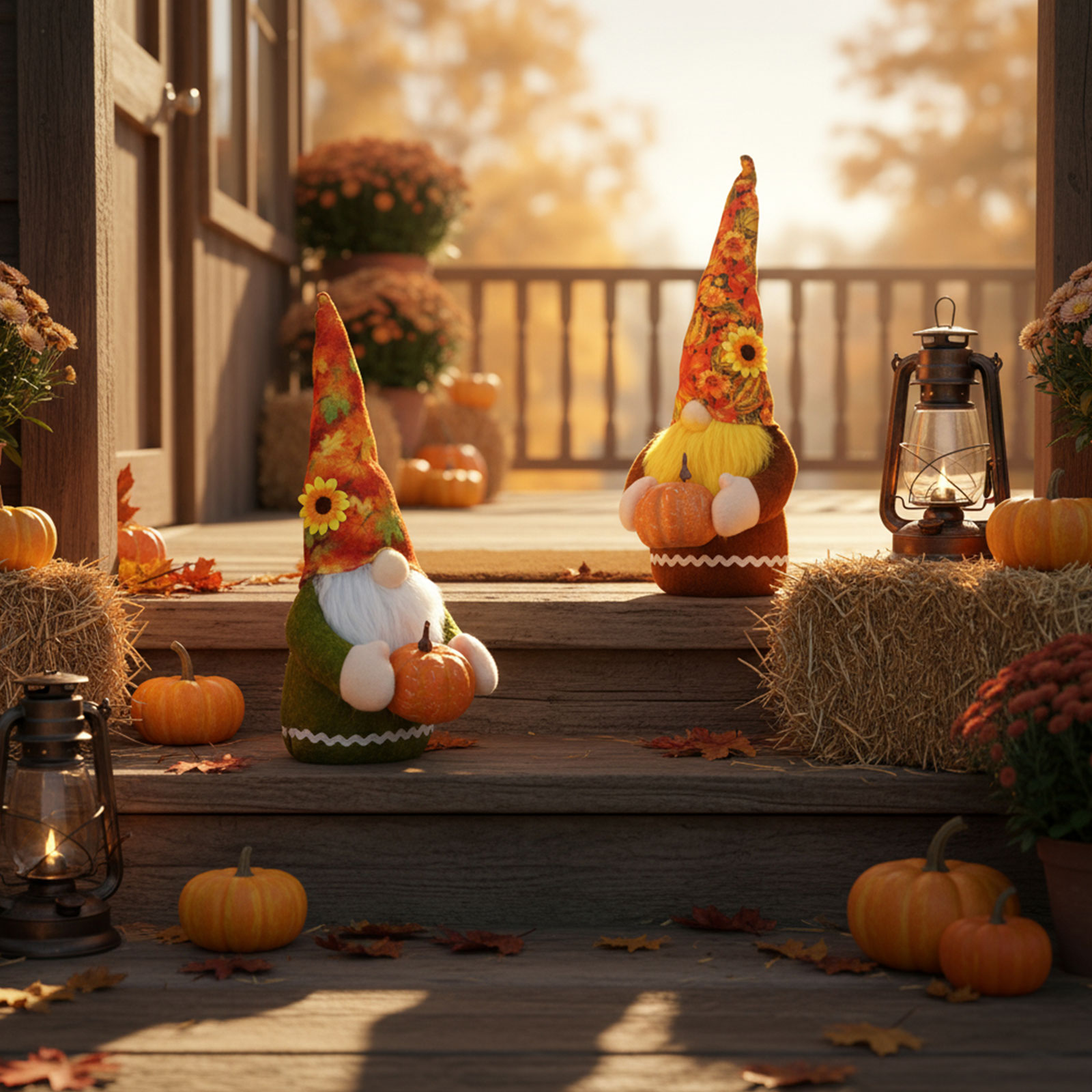 Podzimní dekorace – skřítek s dýní – 2 druhy – 35 x 13 x 13 cm