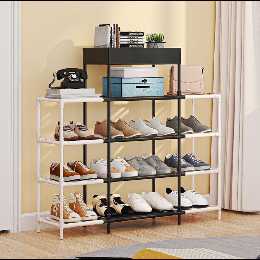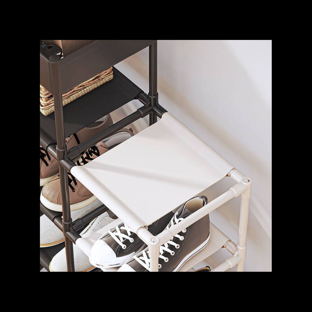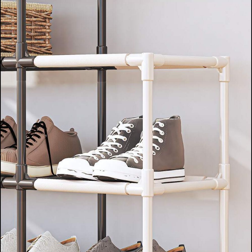 Konec rozházeným botám a nepořádku! Tento snadno přestavitelný botník nabízí řešení pro organizaci, skladování a snadný přístup k vaší sbírce obuvi. Stojan je vhodný pro uložení až 12 párů bot a nabízí několik funkcí pro usnadnění každodenního života. Má čtyři úrovně, díky kterým si můžete výšku stojanu přizpůsobit. Odnímatelné police umožňují, abyste měli boty vždy na očích a rychle našli správný pár k oblečení či příležitosti. Stojan je snadno přizpůsobitelný vašim potřebám. Je vyroben z pevných nerezových kovových tyčí a kvalitního plastu, což zaručuje stabilitu a trvanlivost.