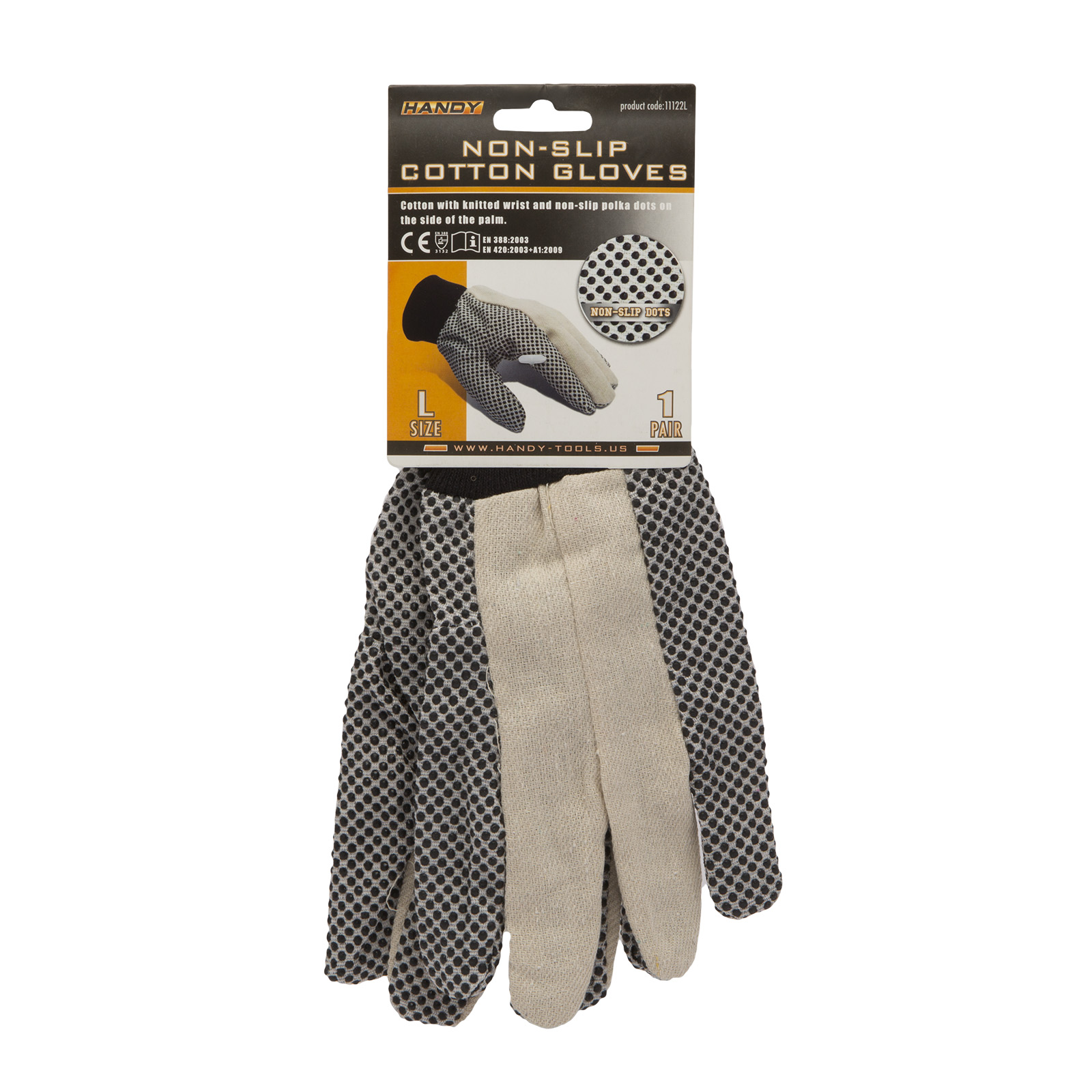 Vyrobeno z bavlny, manžety s gumičkami, protiskluzové gumové plošky na dlaňové části. Tyto rukavice jsou vyrobeny v souladu s ustanoveními směrnice Rady 2016/425 a evropské normy EN 420.