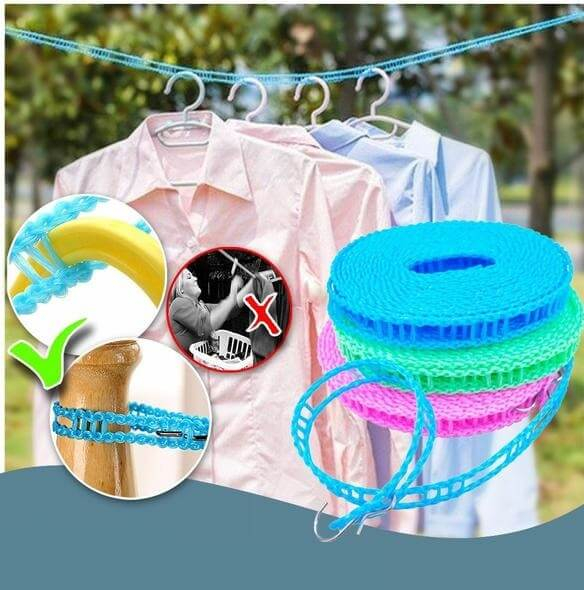 Máte doma hromadu špinavého prádla, ale nemáte dostatek místa na sušení uvnitř? Vaše oblíbené oblečení v bytě neschne? Už si s tím nemusíte dělat starosti, s protiskluzovým větruodolným šňůrou na sušení prádla můžete pohodlně věšet prádlo i na zahradě, i když fouká vítr, a nepotřebujete k tomu ani kolíčky, protože šňůra je navržena tak, že ani při silnějším větru z ní oblečení nespadne.