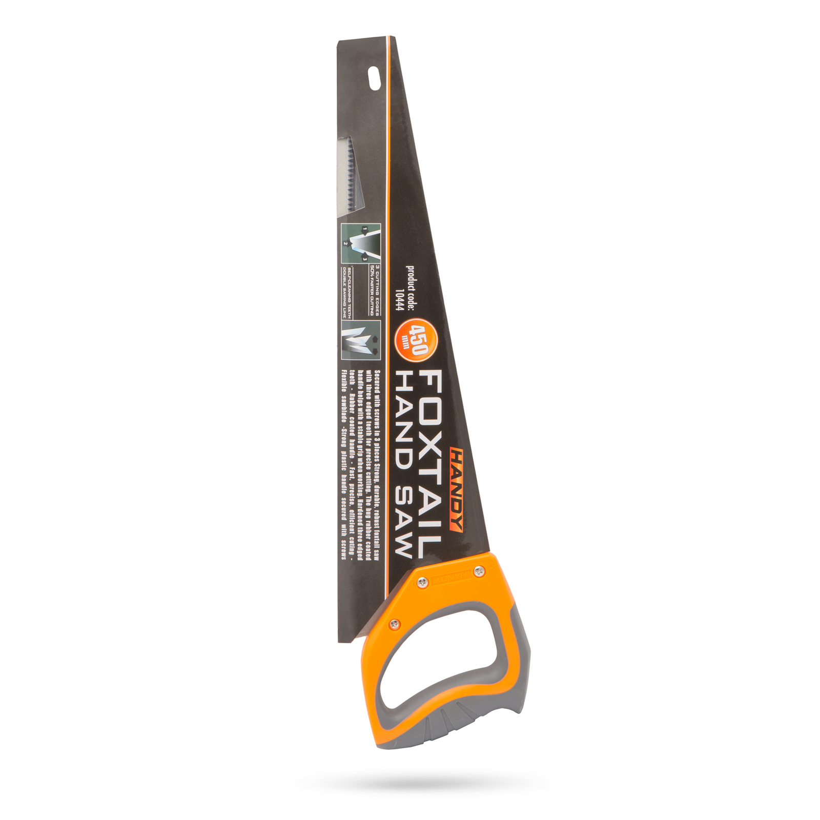 Silná, masivní ruční pila na dřevo se šrouby na 3 místech, která disponuje kalenými trojúhelníkovými zuby. Velká, pogumovaná, plastová rukojeť zajistí stabilní uchopení během práce.