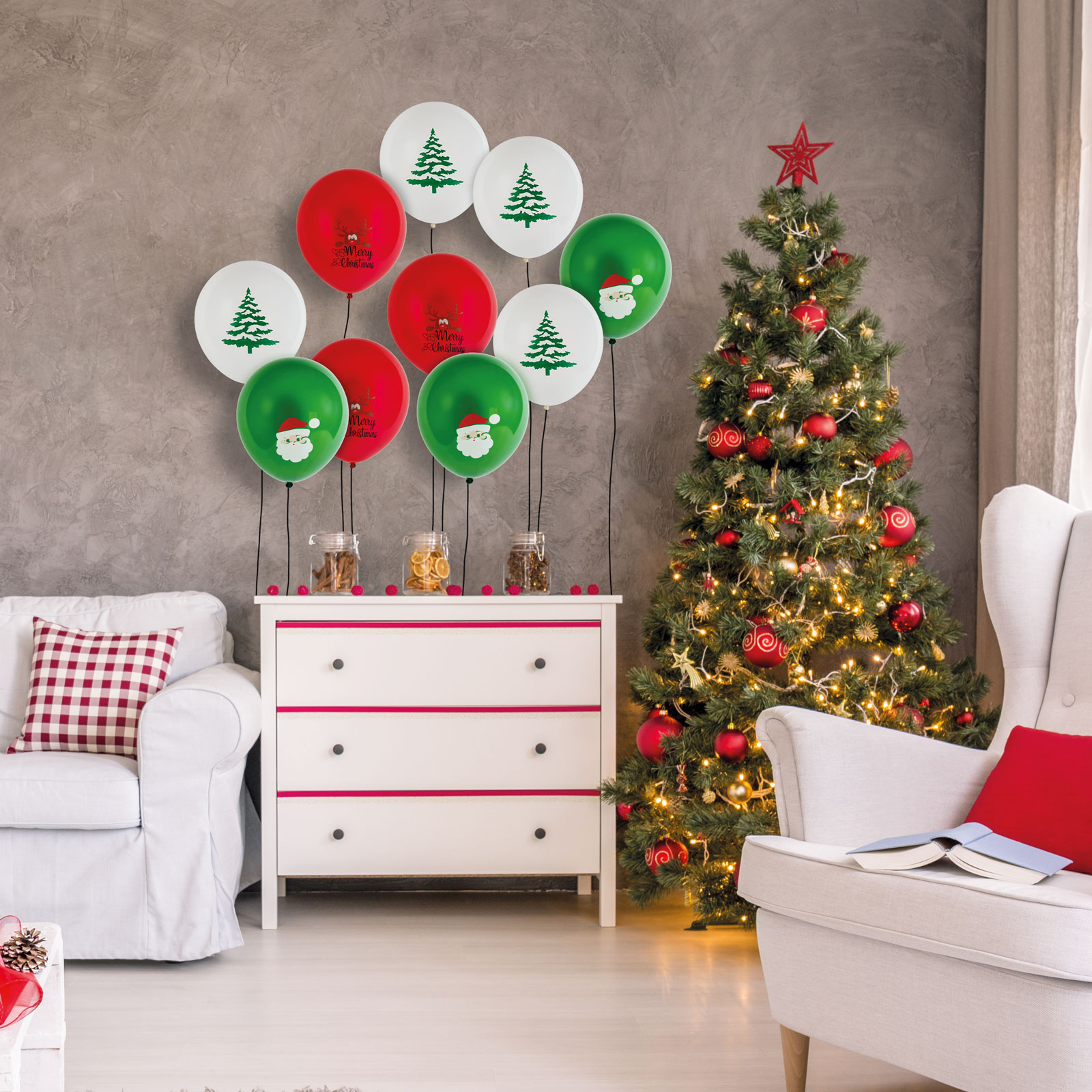 Oživte svou vánoční výzdobu touto veselou sadou vánočních balónků! Balení obsahuje 10 kusů balónků v červené, bílé a zelené barvě s různými vánočními motivy – například Mikuláš, vánoční stromeček, sob a nápis „Merry Christmas“. Barevné a veselé balónky jsou ideální pro výzdobu interiéru i exteriéru, ať už doma, v kanceláři nebo na vánoční akci. Skvěle se kombinují s dalšími vánočními dekoracemi.