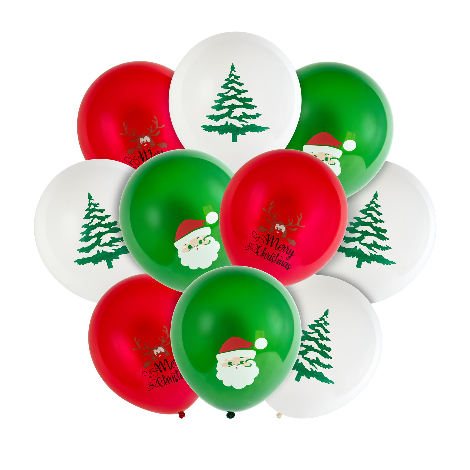 Sada balónků – červené, bílé, zelené, s vánočními motivy – 10 ks / balení