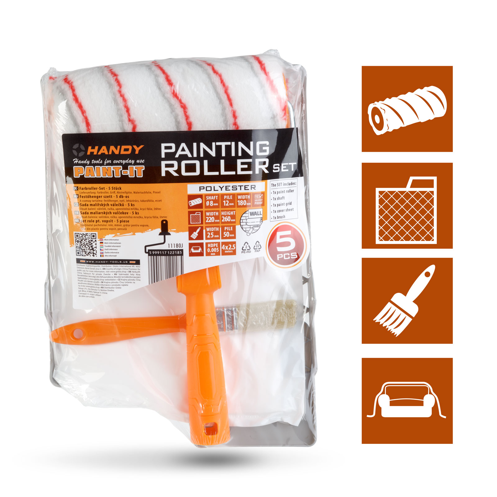Objevte radost z malování a renovace a zkrášlete svůj domov s pomocí této všestranné malířské sady. Tato kompletní sada válečků je ideální volbou pro jakékoliv interiérové malování. Sada obsahuje všechny základní nástroje, které potřebujete pro kvalitní práci: malířský váleček, rám válečku, odkapávací mřížku, štětec a ochrannou fólii – není třeba shánět další nářadí, můžete se ihned pustit do práce.