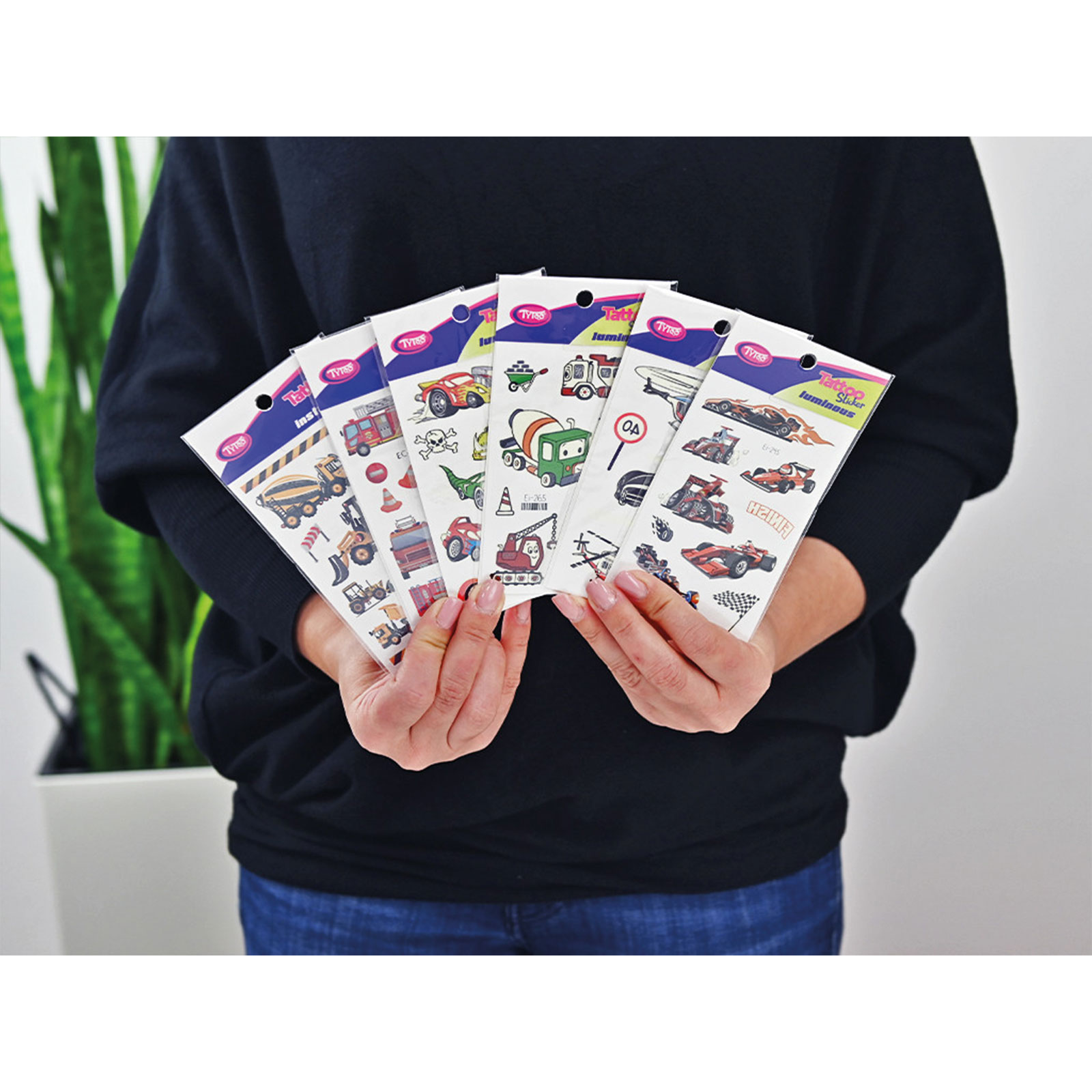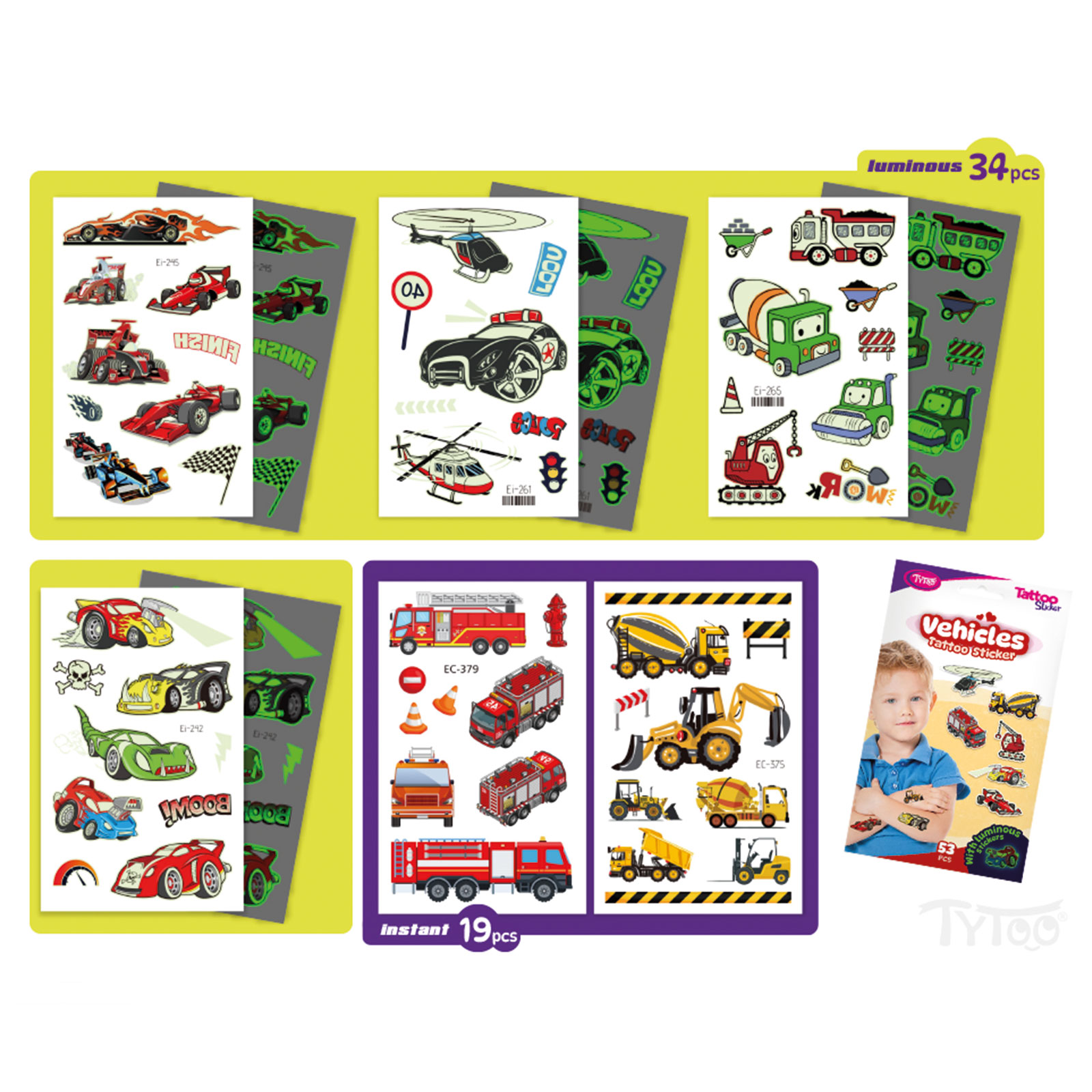 Všechno o autech! Snadno aplikovatelné, jednoduché a pěkné tetování se vzory aut v jedné sadě. Tyto dočasné tetovací nálepky mají vynikající kvalitu, zachovávají si tak svou živou barvu a bohatost detailů po delší dobu, dokonce i několik dní. Snadno se aplikují a odstraňují bez podráždění nebo poškození pokožky. 53 ks nálepek se vzorem aut na 6 listech: sportovní auta, svítící auta, pracovní stroje, hasičská a policejní auta.