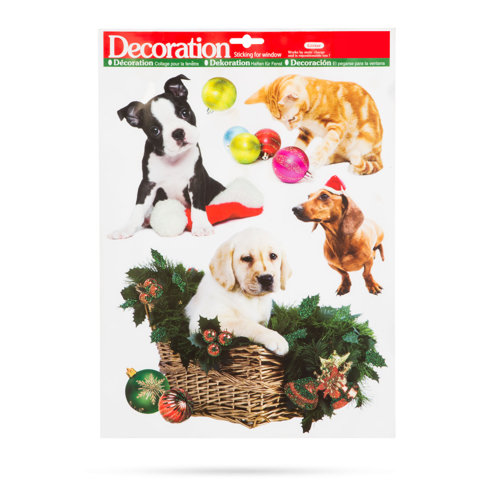 Sada vánočních dekorací do okna – domácí zvířátka – třpytivé – 2 druhy Sada vánočních dekorací do okna – domácí zvířátka – třpytivé – 2 druhy