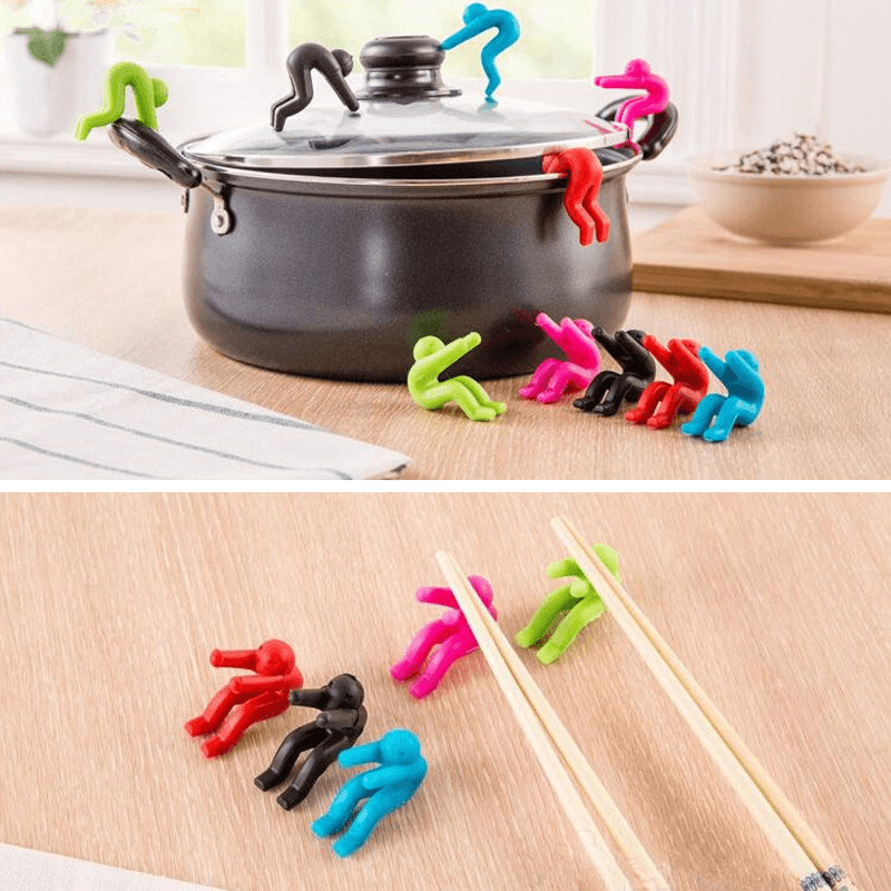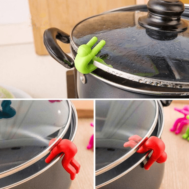 Jeho použití je mimořádně všestranné. Jednoduše umístěte držák na okraj hrnce, aby se poklička úplně nezavřela, a zabráníte tak přetečení tekutiny a úniku bublinek během vaření. Kromě toho chrání před vystřikujícím tukem při pečení a pohodlně drží hůlky nebo lžíci. Dokonce si na něj můžete položit mobilní telefon, když sledujete televizi.