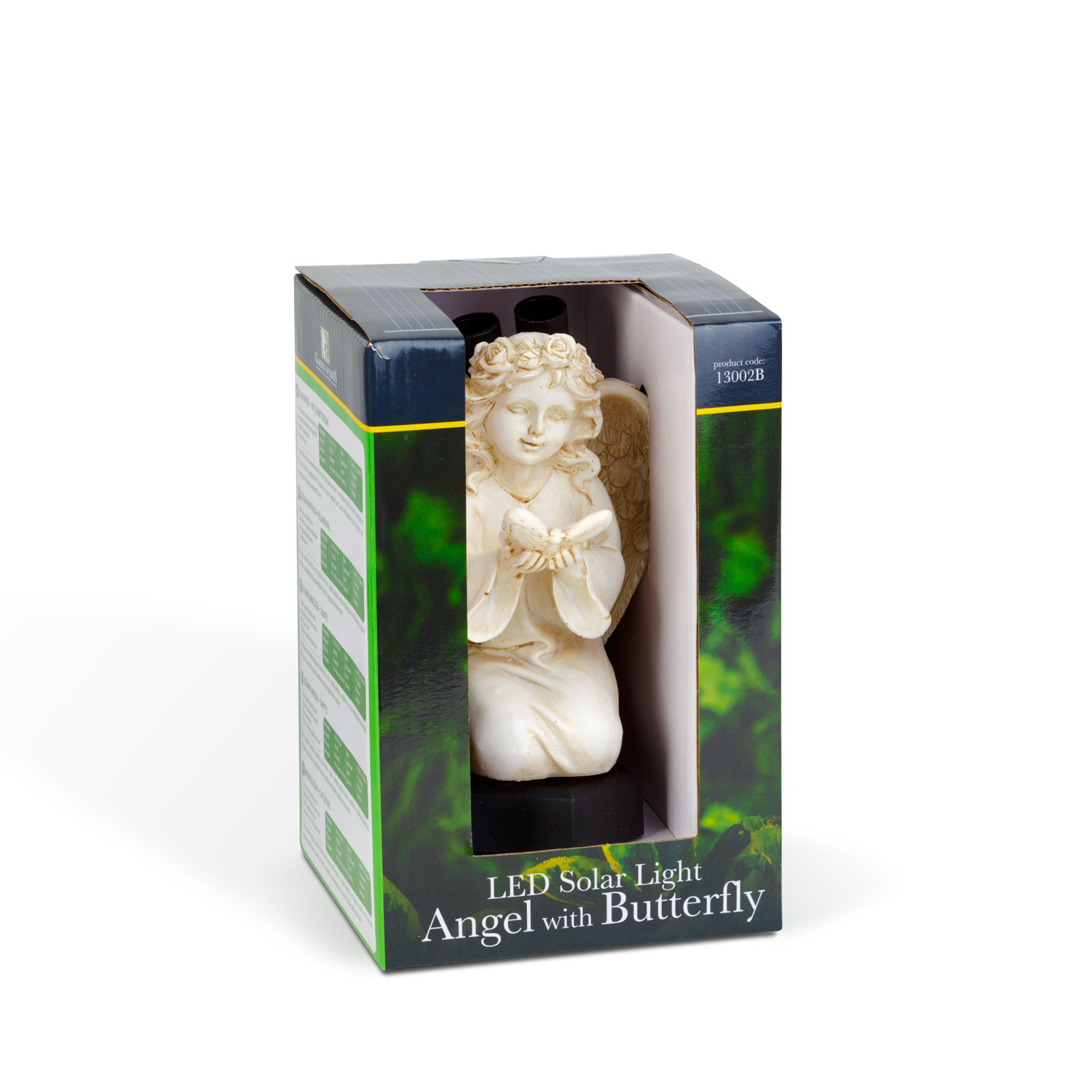 Kouzelná solární zahradní dekorace, která ožívá v noci – klidný andílek s motýlem v ruce je skvělou dekorací kdykoliv během dne a po setmění jemně osvětluje své okolí teplým bílým světlem.